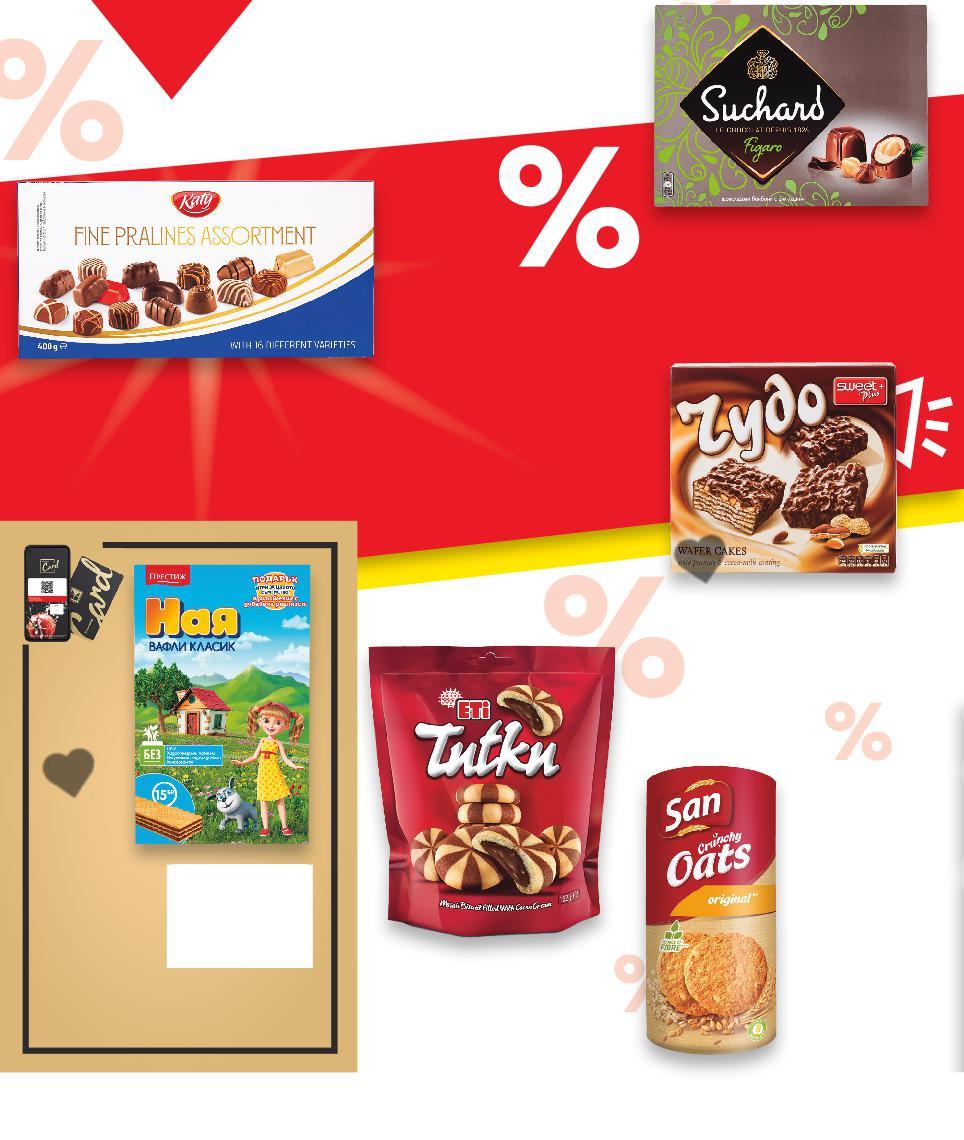 *Със звездичка са обозначени артикулите, които са специално предложение до изчерпване на наличностите. Kaufland не носи отговорност за печатни грешки. 3,29* само 2,19 само -30% 1,39 1,99 -50% 5,99 2,99 3,99* само -23% 9,99 12,99 -29% 0,39 0,55 LUKERIA Пишмание с шамфъстък 150 г (1 кг = 21,94) ETI POPKEK Kейк какао, мозайка или стафиди 200 г (1 кг = 10,95) OLALA Гофрета с шоколад и банан 70 г (1 кг = 19,86) ХУБАВИ НЕЩА Баклава или Кадаиф 350 г (1 кг = 8,55) LUKERIA Халва с бадеми или с орехи 250 г (1 кг = 15,96) Кюнефе класически турски десерт с кадаиф и обезсолено сирене замразено 410 г (1 кг = 24,37) PICANTINA Канела 10 г (1 кг = 39,00) СЛАДКАТА СТРАНА НА ОРИЕНТА S7-BG-KW41-LFT-ORIENT2_R-1000-10 7