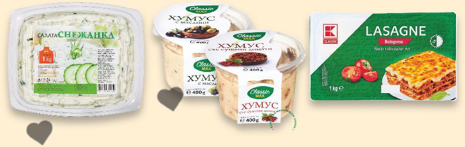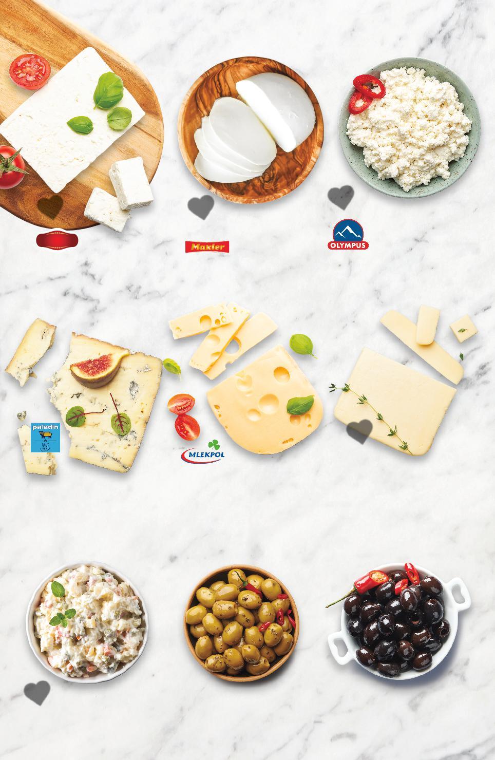 Цените са валидни за посочените на последна страница хипермаркети. Стоките се продават в количества, обичайни за едно домакинство. Всички цени са в лева с включен ДДС. Всички артикули се предлагат без декорация. Снимките са примерни. -25% 14,99 19,99 -43% 5,49 9,79 7,89 само -23% 9,99 12,99 -42% 5,49 9,49 22,99* само 22,89 само -31% 18,99 27,89 -31% 16,49 23,99Сирене от овче мляко кг (1 кг = 14,99) Извара обезмаслена кг (1 кг = 5,49) Зелени маслини Мамут без костилка размер: 101/ 110 Произход: Гърция кг (1 кг = 9,99) Руска салата с шунка кг (1 кг = 5,49) Кашкавал от краве мляко кг (1 кг = 22,99) Сеждамер тип ементал 27% масленост Произход: Полша кг (1 кг = 22,89) Синьо сирене 50% масленост Произход: Германия кг (1 кг = 18,99) Маслини Супер Колосал без костилка размер: 111/ 120 Произход: Гърция кг (1 кг = 7,89) Моцарела от краве мляко кг (1 кг = 16,49) ДЕЛИКАТЕСИ ОТ ВИТРИНА С ОБСЛУЖВАНЕ СИРЕНЕ И КАШКАВАЛ ОТ ВИТРИНА С ОБСЛУЖВАНЕ S16-BG-KW41-LFT-BED3_L-1000-10 16