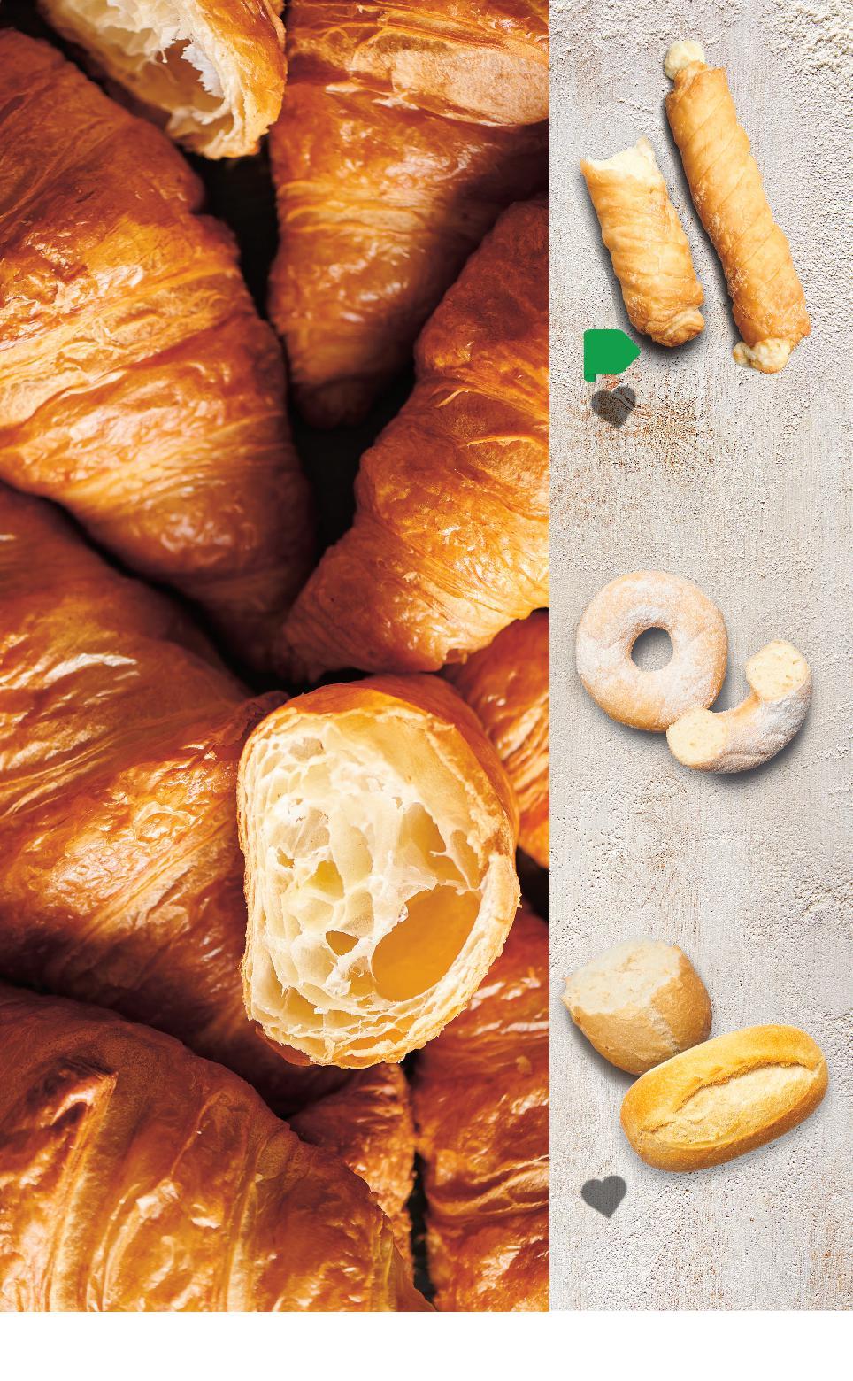 Цените са валидни за посочените на последна страница хипермаркети. Стоките се продават в количества, обичайни за едно домакинство. Всички цени са в лева с включен ДДС. Всички артикули се предлагат без декорация. Снимките са примерни. -25% 0,59 0,79 0,45 само 0,54 само ЗАДЪЛЖИТЕЛЕН ТЕСТ И ПРОБНО ПЕЧЕНЕ НА ВСЕКИ НОВ ПРОДУКТ ПРЯСНО ИЗПЕЧЕНИ ХЛЕБЧЕТА И ЗАКУСКИ ВЪВ ВСЕКИ МОМЕНТ ОТ ДЕНЯ КАЧЕСТВЕНИ ПЕЧИВА 0,15 самоКроасан с 23% масло 57 г (1 кг = 10,36) Донът с поръска захар 49 г (1 кг = 9,19) Баничка тип пура със сирене и извара 85 г (1 кг = 6,36) Минибагета бяла 55 г (1 кг = 2,50) ПЕКАРНА Ново S18-BG-KW41-LFT-BACK_L-1000-10 18