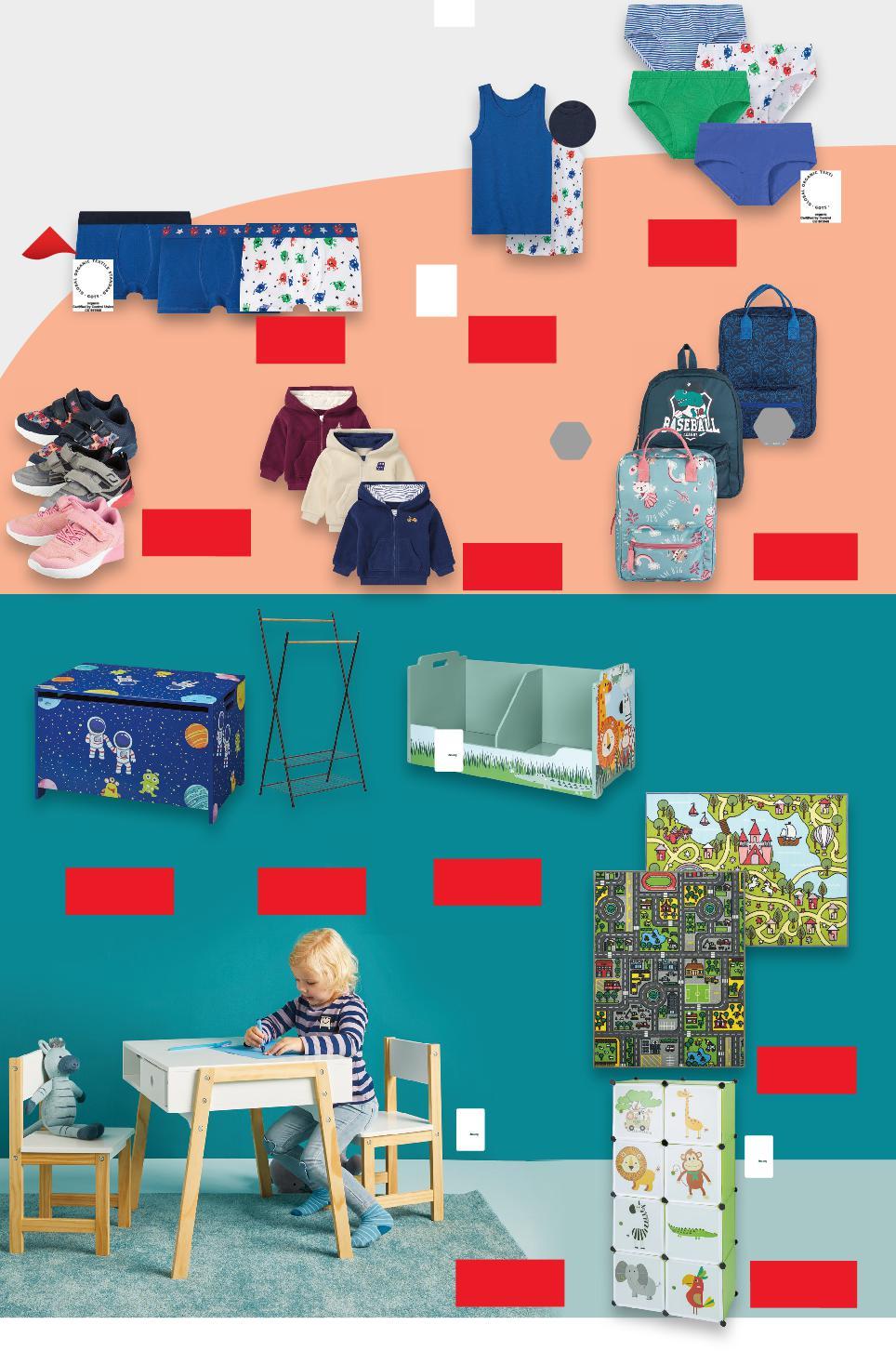Цените са валидни за посочените на последна страница хипермаркети Стоките се продават в количества, обичайни за едно домакинство Всички цени са в лева с включен ДДС. Всички артикули се предлагат без декорация. Снимките са примерни. ните 49,99* 49,99* 99,99* 24,99* 29,99 9,99* 9,99* 7,99* 11,99* 19,99* 64,99* 59,99* 4 броя 3 броя 2 броя KUNIBOO Детски слип 98 - 128 KUNIBOO Детски боксер 98 - 128 KUNIBOO Детски потник 98 - 128 KUNIBOO Бебешки суитшърт 62 - 92 KUNIBOO Детска раница 29 x 22 x 10 см КIDLAND Детскa ракла 60 x 40 x 37 см KIDLAND Детска етажерка 76,5 x 38 x 40 см KIDLAND Детска маса с 2 стола маса: 48 x 50 x 63,6 см стол: 27 x 27 x 50 см KUNIBOO Детски обувки 24 - 30 KIDLAND
