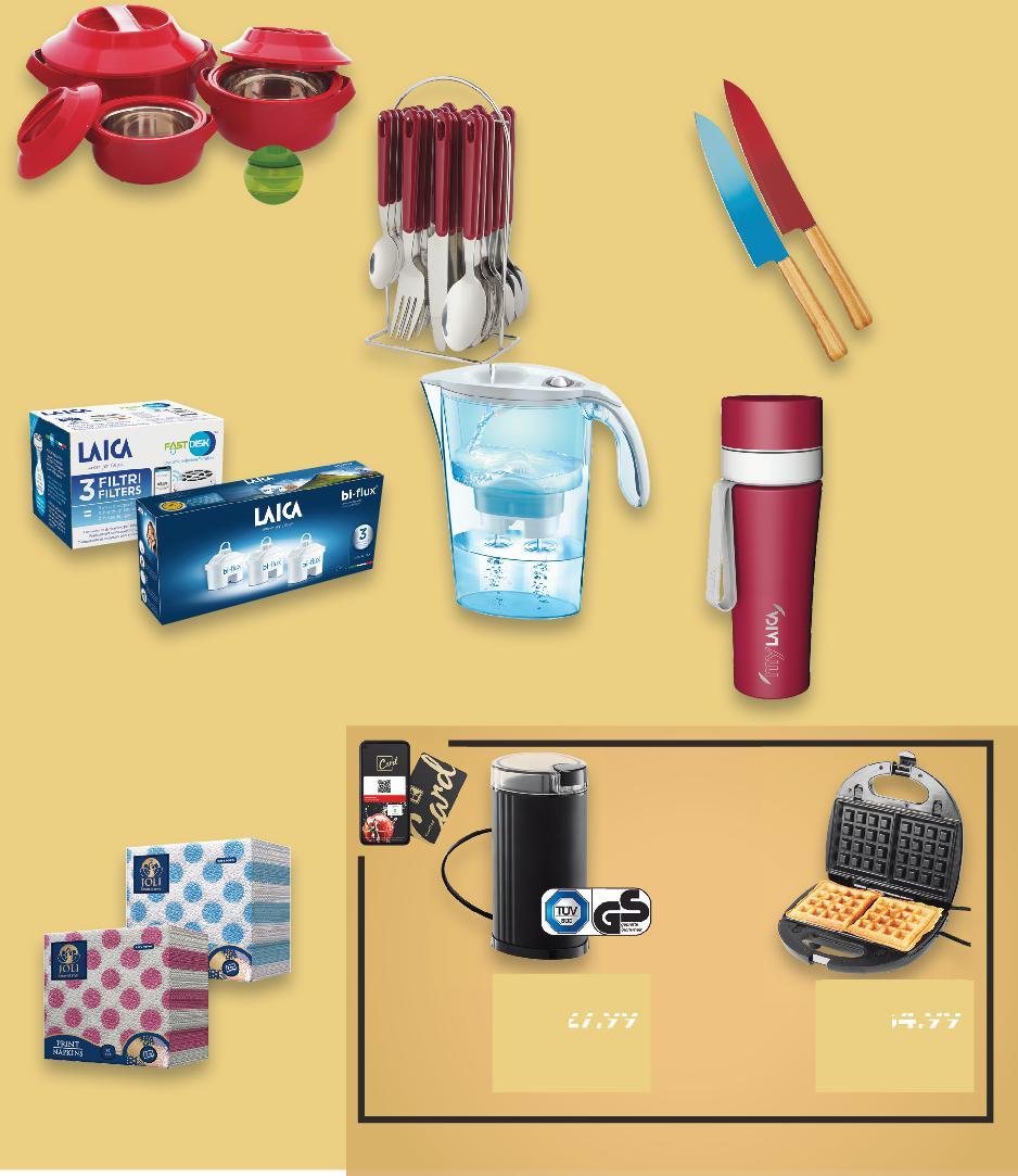 Отстъпката с Kaufland Card e изчислена спрямо стандартната текуща цена, на която продуктът се предлага в хипермаркета. *Със звездичка са обозначени артикулите, които са специално предложение до изчерпване на наличностите. Kaufland не носи отговорност за печатни грешки. 7,99* само 14,99* само 22,99* само 6,99* само -37% 0,99 1,59 -50% 19,99 39,99 -50% 24,99 49,99 27,99* само 8,99* само -30% 44,99 64,99 само -28% 19,99 27,99 само 25,99* 17,99* 21,99 15,99 3 броя 3 броя 25 части 70 броя JOLY Салфетки 33 x 33 см SPICE&SOUL Форма/Тава за печене стомана с незалепващо покритие, Ø28 x 3 см, 37 x 20 x 7 см, 41 x 26,5 x 6 см или 42 x 29 x 4 см SPICE&SOUL Тенджера или Касерола стомана с емайлирано покритие, стъклен капак SPICE&SOUL Комплект кутии с капак на винт, поддържат храната топла до 5 часа Спортна филтрираща бутилка удароустойчив корпус от стомана, филтър Fast Disk с капацитет 120 л, 550 мл Филтрираща кана за вода Stream/Carmen с прозорец за бързо пълнене, 2,3 л SPICE&SOUL Комплект прибори за хранене благородна стомана и пластмаса, 6 лъжици, 6 вилици, 6 ножа, 6 лъжички за кафе SPICE&SOUL Нож универсален 20 см, сантоку 17,5 см или за белене2 бр., бамбукова дръжка SPICE&SOUL Минисъд за готвене алуминий, незалепващо ILAG покритие, различни видове, 1 бр. SWITCH ON Гофретник 3 в 1 WM-C0201 незалепващо покритие 3 години гаранция SWITCH ON Кафемелачка A0201 150 W 3 години гаранция Цена с KAUFLAND CARD Цена с KAUFLAND CARD само Ø24 x 16,3 см 5,6 л само Ø20 x 14,5 см, 3,2 л Филтър за вода Произведено в Италия -38%35,99 Bi-Flux, капцитет 150 л -42%27,99 за спортна филтрираща бутилка, капацитет 120 л тенджера: Ø16 x 11,7 см, 1,6 л касерола: Ø16 x 7 см 1,2 л премахва хлор, подобрява вкуса на водата и запазва минералните соли S37-BG-KW39-LFT-NFP1_R-1000-10 37