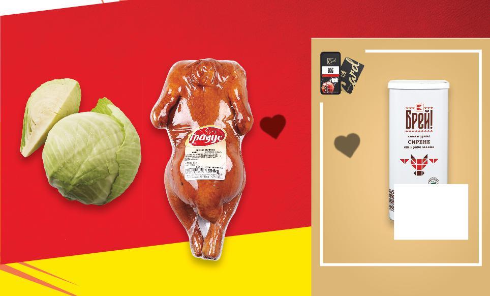 Отстъпката с Kaufland Card e изчислена спрямо стандартната текуща цена, на която продуктът се предлага в хипермаркета. *Със звездичка са обозначени артикулите, които са специално предложение до изчерпване на наличностите. Kaufland не носи отговорност за печатни грешки. 10 кг 1 кг от краве мляко от района на град Пазарджик ОТ ЧЕТВЪРТЪК, 29.09.2022 ДО НЕДЕЛЯ, 02.10.2022 -24% 14,99 19,79 12,49 само -24% 6,79 8,99 14,99* само 14,69* само 0,65 само -32% 4,99 7,39 -31% 9,99 14,49 само ✓ екстра върджин BIANCHI Кафе на зърна Family Silver 1 кг (1 кг = 14,99) COSTA D`ORO INTEGRALE Маслиново масло 1 л (1 л = 12,49) ГРАДУС Пиле варенопушено кг (1 кг = 6,79) ECONOMIC Суха храна за кучета 10 кг (1 кг = 1,50) БЕЛИИСА Кашкавал от краве мляко 800 г (1 кг = 18,37) Бяло зеле Клас: I кг КАМЕНИЦА Бира 4,4% vol 6 бр. х 0,5 л кен (1 л = 1,67) БРЕЙ! Сирене метална кутия 800 г (1 кг = 12,49) Цена с KAUFLAND CARD ОТЧЕТВЪРТЪКДОНЕДЕЛЯ ОТ ЧЕТВЪРТЪК ДО НЕДЕЛЯ S47-BG-KW39-LFT-WEEK_R-1000-10 47