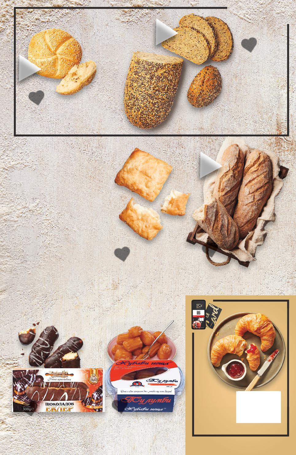 *Със звездичка са обозначени артикулите, които са специално предложение до изчерпване на наличностите. Kaufland не носи отговорност за печатни грешки. Отстъпката с Kaufland Card e изчислена спрямо стандартната текуща цена, на която продуктът се предлага в хипермаркета. РАЗНООБРАЗИЕ ОТ НАД 20 ТОРТИ И ДЕСЕРТА -17% 1,45 1,75 3,99 само -36% 3,19 4,99 0,12 само 1,59 само -50% 1,07 2,15 -37% 0,49 0,79само само СТРОГО КОНТРОЛИРАНИ СЪСТАВКИ ПЕЧЕМ ПРЕЗ ЦЕЛИЯ ДЕН СПЕЦИАЛНИ ПРОГРАМИ ЗА ПЕЧЕНЕ С КАЧЕСТВО СИ ИЗКАРВАМЕ ХЛЯБА Земел със сусам 60 г (1 кг = 2,00) Гръцка баница с извара и сирене 235 г (1 кг = 6,18) ХУБАВИ НЕЩА Тулумби 500 г (1 кг = 7,98) Миниеклер класик или с шоколад 300 г (1 кг = 10,64) Хляб със семена поръска от слънчогледово, сусамово, ленено и маково семе 700 г (1 кг = 2,28) Багета Рустик или Рустик грахам 250 г (1 кг = 4,28) Кроасан с 23% масло 57 г (1 кг = 8,60) Цена с KAUFLAND CARD ПЕКАРНА S21-BG-KW39-LFT-FRP1_R-1000-10 21