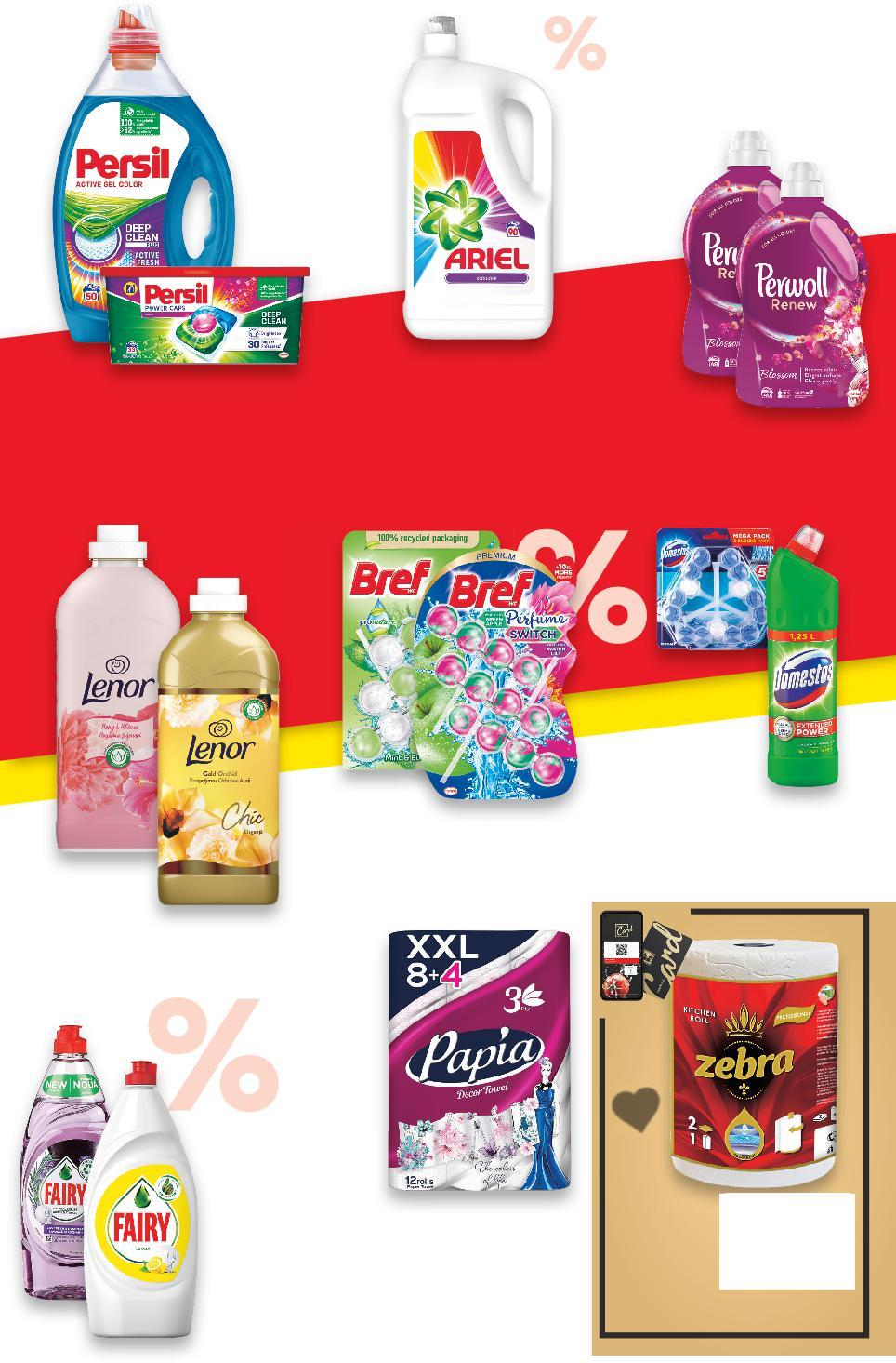 *Със звездичка са обозначени артикулите, които са специално предложение до изчерпване на наличностите. Kaufland не носи отговорност за печатни грешки. ВЗЕМИ ЧЕТЕН БРОЙ от тeзи артикули на половин цена. 4,99 само 33,49* само 13,99 само -38% 5,49 8,99 5,99 само 4,39 само 10,89* само -23% 4,39 5,75само само -50% 25,99 51,98 50 пранета 1 изпиране = 0,28лв. 33 пранета 1 изпиране = 0,43 лв. 90 пранета 1 изпиране = 0,38 лв. 48/50 пранета 1 изпиране = 0,11/0,10 лв. LENOR Омекотител различни видове 1,44 л = 48 пранета или 1,5 л = 50 пранета (1 л = oт 3,33) ARIEL Гел или Капсули за пране гел: различни видове 4,95 л = 90 пранета капсули: OXI или Unstoppables 54 бр. = 54 пранета или Mountain Spring 65 бр. = 65 пранета (1 л = 6,77) PERSIL Гел или Капсули за пране различни видове 2,50 л = 50 пранета или 33 бр. = 33 пранета (1 л = 5,60) DOMESTOS Универсален препарат, Спрей или WC блокчета препарат: Pine или Atlantic 1,25 л спрей: 750 мл блокчета: различни видове 3 x 55 г (1 л = от 4,40) BREF WC блокче различни видове 3 бр. х 42 - 50 г FAIRY Препарат за съдове различни видове 450 - 800 мл (1 л = от 5,49) PAPIA Кухненска ролка Decor или Pure& Soft трипластова 12 бр. в опаковка (1 бр. = 0,91) ZEBRA Кухненска ролка Professional двупластова 250 къса 1 бр. Цена с KAUFLAND CARD Perwoll Гел или Капсули за пране различни видове 2,88 л = 48 пранета капсули: Black 27 бр. = 27 пранета или Color 28 бр. = 28 пранета (1 л = 4,52) ПРОМОПАКЕТ ДРОГЕРИЯ Отстъпката с Kaufland Card e изчислена спрямо стандартната текуща цена, на която продуктът се предлага в хипермаркета. S33-BG-KW39-LFT-DRP_R-1000-10 33