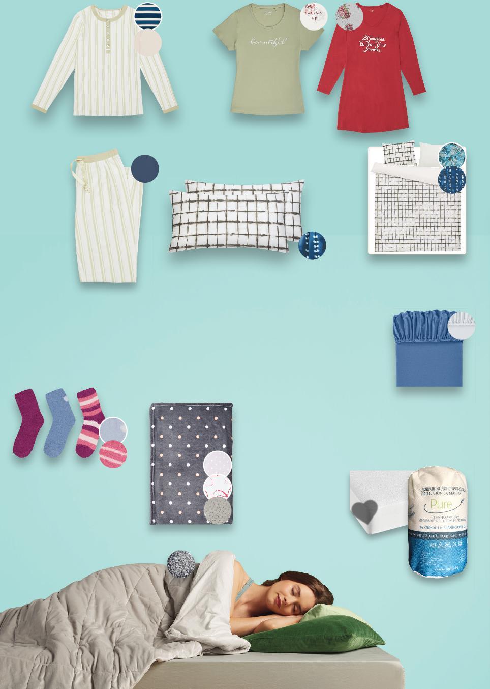 Цените са валидни за посочените на последна страница хипермаркети. Стоките се продават в количества, обичайни за едно домакинство. Всички цени са в лева с включен ДДС. Всички артикули се предлагат без декорация. Снимките са примерни. 11,99* 11,99* 11,99* 5,99* 74,99* 35,99* 8,99* 18,99* 25,99* 29,99* 14,99 17,99 19,99-50% 89,89 179,90 22,99 24,99 3 чифта 2 броя ✓ 100% сатениран памук ✓ 100% сатениран памук ✓ 100% сатениран памук✓ 100% памук ✓ 100% памук 9,99* ✓ 100% памук OYANDA/ TOWNLAND Пижама долна част дамска или мъжка, 36 - 58, сертификати GOTS, OEKO-TEX® OYANDA/ TOWNLAND Пижама горна част дамска или мъжка, 36 - 58, сертификати GOTS, OEKO-TEX® OYANDA Дамска нощница високо съдържание на памук, 36 - 46, сертификати GOTS, OEKO-TEX® LIV&BO Одеяло капитонирано, има успокояващ ефект върху тялото, практичната чанта за съхранение 135 x 200 см сертификат OEKO-TEX® пълнеж с фини стъклени перли OYANDA/ TOWNLAND Чорапи дамски или мъжки, 35 - 46, сертификат OEKO-TEX® LIV&BO Спален комплект с цип, сертификати GOTS, OEKO-TEX® LIV&BO Калъфка за възглавница с цип, сертификати GOTS, OEKO-TEX® LIV&BO Чаршаф с ластик за матраци с височина до 25 см, сертификати GOTS, OEKO-TEX® LIV&BO Одеяло микрофибър, сертификат OEKO-TEX® AGLIKA Протектор за матрак Relax Feeling само само само само xxxxxxxxx само само само само само 4 части 2 части 40 x 80 см 90 - 100 x 200 см, 140 - 160 х 200 см, само 180 - 200 х 200 см само 140 х 190 см или 150 х 200 см само 90 х 200 см само 140 х 200 см само 160 х 200 см само 180 х 200 см OYANDA Дамска пижама горна част 36 - 46, сертификати GOTS, OEKO-TEX® само Нашите марки Глобален сертификат за качество, гарантиращ неналичието на вредни вещества Глобален сертификат за органичен текстил, гарантиращ природосъобразно и социално отговорно производство на текстил УДОБСТВО ЗА ЦЯЛА НОЩ S42-BG-KW39-LFT-NFP4_L-1000-10 42