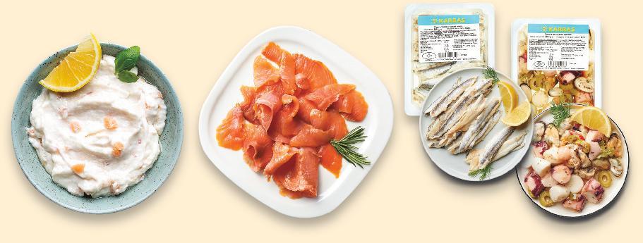 Цените са валидни за посочените на последна страница хипермаркети. Стоките се продават в количества, обичайни за едно домакинство. Всички цени са в лева с включен ДДС. Всички артикули се предлагат без декорация. Снимките са примерни. На последна страница може да видиш дали в твоя Kaufland предлагаме риба и морски деликатеси от витрина с обслужване или на самообслужване. 29,95 само 4,99 само 29,99 само 8,99 само 29,99 само 22,99 само 13,99 18,99 самосамо Сьомга котлет Улов: аквакултури в Норвегия пресен кг (1 кг = 29,95) Сьомгoва пъстърва филенца студено-пушени кг (1 кг = 29,99) Разбит хайвер с парченца пушена сьомга кг (1 кг = 8,99) Риба тон филе Улов: див улов в Испания размразено кг (1 кг = 29,99) Фагри изчистенo, без люспи Улов: аквакултури в Гърция прясно кг (1 кг = 22,99) KARRAS Маринована аншоа или Салата морски дарове по автентична гръцка рецепта 200 г (1 кг = 24,95) Скариди бланширани Улов: аквакултури в Колумбия и Венецуела размразени кг (1 кг = 18,99) Ципура Улов: аквакултури в Гърция прясна кг (1 кг = 13,99) РИБНИ ДЕЛИКАТЕСИ РИБА И МОРСКИ ДЕЛИКАТЕСИ СПЕЦИАЛНА ОПАКОВКА, ЗАПАЗВАЩА СВЕЖЕСТТА ДОСТАВКИ ОТ ДЪЛГОГОДИШНИ ПАРТНЬОРИ СВЕЖ УЛОВ ОТ БЛИЗО И ДАЛЕЧ изчистена, без люспи морски деликатес, подходящ за паеля, паста и салати съдържа Омега-3 мастни киселини S18-BG-KW39-LFT-FIP_L-1000-10 18