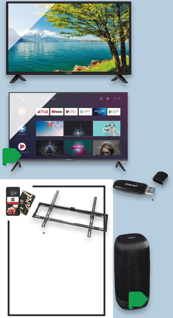 Отстъпката с Kaufland Card e изчислена спрямо стандартната текуща цена, на която продуктът се предлага в хипермаркета. Цените са валидни за посочените на последна страница хипермаркети. Стоките се продават в количества, обичайни за едно домакинство. Всички цени са в лева с включен ДДС. Всички артикули се предлагат без декорация. Снимките са примерни. Oколо99cм39инча Oколо81cм32инча 24,99* само 29,99* само 24,99* само 379,90* само -50% 5,99 11,99 349,90 само 24,99* само 29,99* само 14,99* само ✓ вграден Chromecast -50% 14,99 29,99 2само 9 9 само USB памет 128 GB 3.0 Micro SD карта 128 GB JAY-tech Фитнес гривна FTY18 мери крачки, калории, кръвно налягане, пулс, 1.3” LCD дисплей, Bluetooth 4.0, App: FitPro, IP67 Bluetooth колонка Tube 2.0 стерео звук, 8 часа работа без зареждане, батерия за бързо зареждане до 2 часа с LED индикатор, 3 W Смарт телевизор HD Android TV™ 32“ (81 см), 10-битов кодек HEVC (H.265), звук: 8W + 8W, 3 x HDMI изхода, Bluetooth®, Wi-Fi LED Телевизор динамичен контраст, 1366 x 768 HD Ready, DVB-T/T2/C/MPEG4, HDMI, SCART, USB GRIXX Слушалки с микрофон кабел 1,2 м, аудио жак 3,5 мм, 3 mW Универсално дистанционно 8 в 1 съвместимо с над 1000 модела телевизори, бутони за Smart-TV и Аpp меню, управление на 2 уреда едновременно Вътрешна антена DVB-T/ T2 121703 за дигитална TV и радио (DAB/DAB+), с LTE филтър, автоматично регулиращ се усилвател, включени кабел за антена и USB кабел SWITCH ON Стойка за телевизор за телевизори от 37 до 75“ 94 х 191 см Цена с KAUFLAND CARD Нашите електроуреди са с гаранция, значително по-дълга от законовата, защотовярваме във високото им качество 3 ГОДИНИГАРАНЦИЯ Ново ЗАБАВЛЕНИЕ 24/7Ново Ново ЩЕ ОТКРИЕШ ДО ИНФОРМАЦИЯ ЩЕ ОТКРИЕШ ДО ИНФОРМАЦИЯ ЩЕ ОТКРИЕШ ДО ИНФОРМАЦИЯ S40-BG-KW39-LFT-NFP3_L-1000-10 40