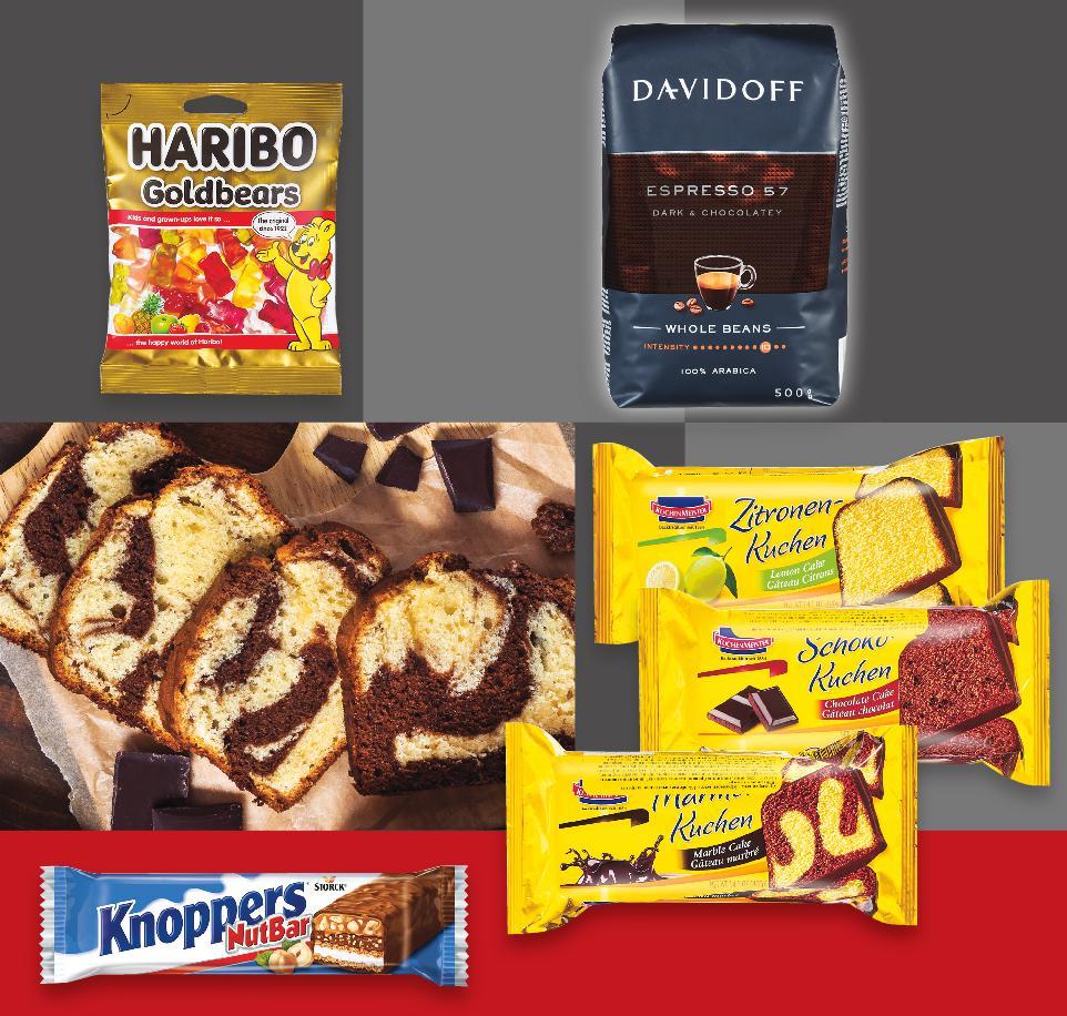 Цените са валидни за посочените на последна страница хипермаркети. Стоките се продават в количества, обичайни за едно домакинство. Всички цени са в лева с включен ДДС. Всички артикули се предлагат без декорация. Снимките са примерни. Аромат на ябълка, кайсия Плодов аромат на праскова и манго 3 литра Свеж плодов аромат -34% 14,99 22,99 -25% 1,49 1,99 -26% 4,79 6,49 -31% 13,99 20,49 -32% 18,99 27,99 -33% 0,99 1,49 MAYBACH Бяло вино Ризлинг Произход: Германия Подходящо за: морски дарове, бяла риба 3 л BIB (1 л = 5,00) HARIBO Бонбони различни видове 100 г (1 кг = 14,90) KUCHENMEISTER Кейк различни видове 400 г (1 кг = 11,98) BLUE NUN Пенливо вино Blue или Rose Произход: Германия 0,75 л (1 л = 18,66) DAVIDOFF Кафе на зърна Espresso 57 500 г (1 кг = 37,98) KNOPPERS Шоколадов десерт с лешници или кокос 40 г (1 кг = 24,75) ГЕРМАНИЯ 100% арабика S8-BG-KW39-LFT-DE2_L-1000-10 8