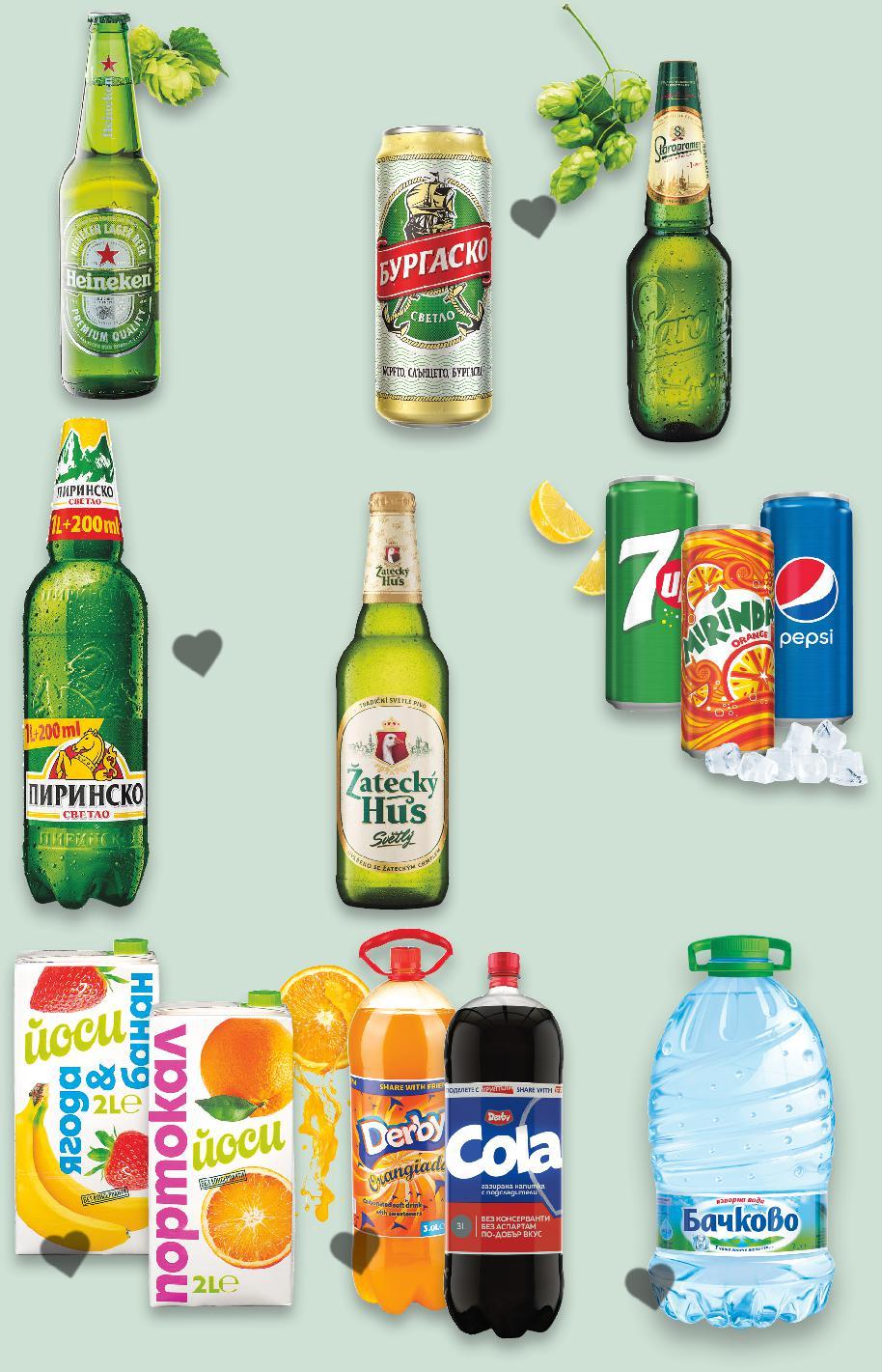 *Със звездичка са обозначени артикулите, които са специално предложение до изчерпване на наличностите. Kaufland не носи отговорност за печатни грешки. НАД 350 БЕЗАЛКОХОЛНИ НАПИТКИ И БИРИ ЩЕ НАМЕРИШ ПРИ НАС 0,89 само -33% 1,29 1,95 -35% 1,19 1,85 -35% 2,19 3,39 -28% 0,99 1,39 -33% 1,39 2,09 1,49 само -45% 1,79 3,29 само 0,79 2 литра 2 литра 7 литра БУРГАСКО Бира 4,4% vol 0,5 л кен (1 л = 1,78) HEINEKEN Бира 5% vol * Цената не включва амбалаж * Цена на амбалаж 0,10 лв. 0,5 л бутилка (1 л = 2,58) DERBY Газирана напитка различни видове 3 л PET (1 л = 0,40) ЙОСИ Плодова напитка различни вкусове 2 л (1 л = 1,10) ZATECKY HUS Бира 5% vol * Цената не включва амбалаж * Цена на амбалаж 0,10 лв. 0,5 л бутилка (1 л = 1,98) ПИРИНСКО Бира 4,4% vol 1,2 л PET (1 л = 1,16) STAROPRAMEN Бира 5% vol 1 л РЕТ (1 л = 1,49) БАЧКОВО Изворна вода 7 л PET (1 л = 0,26) PEPSI/ MIRINDA/ 7 UP Газирана напитка различни видове 0,33 л кен (1 л = 2,40) БЕЗАЛКОХОЛНИ НАПИТКИ И БИРА S29-BG-KW39-LFT-GEP1_R-1000-10 29