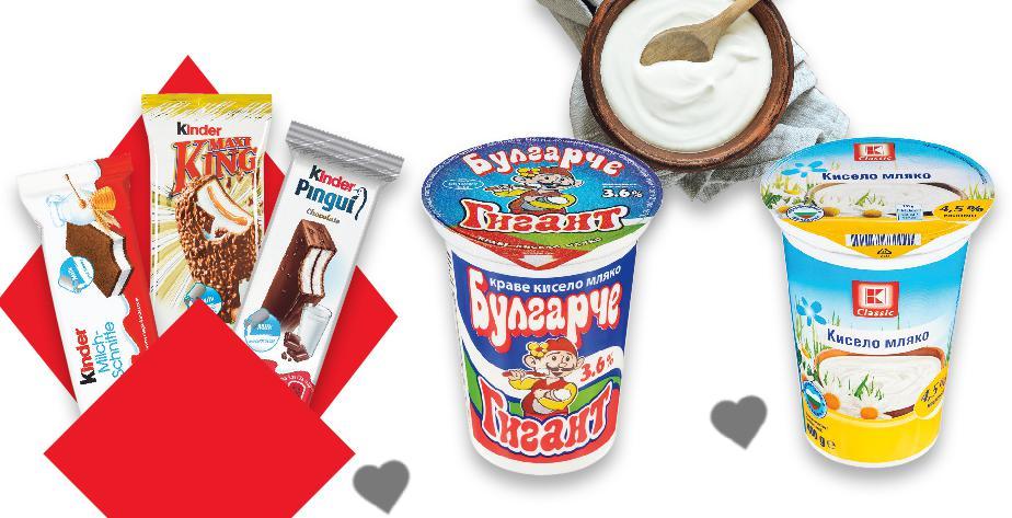 Отстъпката с Kaufland Card e изчислена спрямо стандартната текуща цена, на която продуктът се предлага в хипермаркета. Цените са валидни за посочените на последна страница хипермаркети. Стоките се продават в количества, обичайни за едно домакинство. Всички цени са в лева с включен ДДС. -20% ОТСТЪПКА ЗА ОХЛАДЕНИ ДЕСЕРТИ С МАРКА KINDER -33% 1,99 2,99 2,29* само -25% 4,79 6,45 -21% 1,69 2,15 -20% 3,99 4,99 -26% 1,09 1,49 -17% 1,15 1,39 -35% 5,99 с9,29 9амо ,29 само МЛЕЧНИ И РАСТИТЕЛНИ ПРОДУКТИ TOMMI Продукт за мазане 25% масленост или с вкус на масло 500 г (1 кг = 3,98) ЗДРАВЕЦ Прясно мляко 1,5% масленост 1 л (1 л = 2,29) ALPRO Напитка премиум серия или Not Milk 1,8% или 3,5% масленост 1 л (1 л = 4,79) DANONE Активиа с плодове различни вкусове 280 г (1 кг = 6,04) ДИМИТЪР МАДЖАРОВ Кисело мляко 4,5% масленост с каймак 1050 г (1 кг = 3,80) Кисело мляко 4,5% масленост 400 г (1 кг = 2,88) БУЛГАРЧЕ Кисело мляко 3,6% малсеност 400 г (1 кг = 2,73) OLYMPUS Цедено мляко 10% масленост 1 кг (1 кг = 5,99) Цена с KAUFLAND CARD S20-BG-KW39-LFT-FRP1_L-1000-10 20
