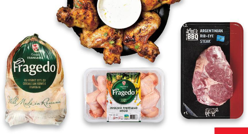 Цените са валидни за посочените на последна страница хипермаркети. Стоките се продават в количества, обичайни за едно домакинство. Всички цени са в лева с включен ДДС. Всички артикули се предлагат без декорация. Снимките са примерни. 1,65 само 6,79 само6,79* само -27% 7,99 10,99 -23% 12,99 17,09 13,99* само 3,49* само -26% 11,65 15,79 4,99* само НАРОДЕН Кайма охладена универсална или за принцеси с или без кашкавал 250 г (1 кг = 6,60) FRAGEDO Пилешки крила охладени кг (1 кг = 6,79) FRAGEDO Цяло пиле охладено кг (1 кг = 6,79) LACRIMA Сирене от овче мляко 700 г (1 кг = 18,56) РОДОПСКО ЧУДО Сирене от краве мляко вакуум опаковка около 800 г кг (1 кг = 13,99) Кебапчета 10 бр. х 50 г 500 г (1 кг = 6,98) LET‘S BBQ Рибай стек от пасищно отглеждани аржентински говеда месо, зряло 20 дни 250 г (1 бр. = 11,65) ВЕДРАРЕ Сирене смес от биволско и краве мляко 400 г (1 кг = 19,98) Агнешки карначета 400 г (1 кг = 12,48) МЕСО ОТ ВИТРИНА НА САМООБСЛУЖВАНЕ СИРЕНЕ И КАШКАВАЛ ОТ ВИТРИНА НА САМООБСЛУЖВАНЕ S16-BG-KW39-LFT-SB_L-1000-10 16