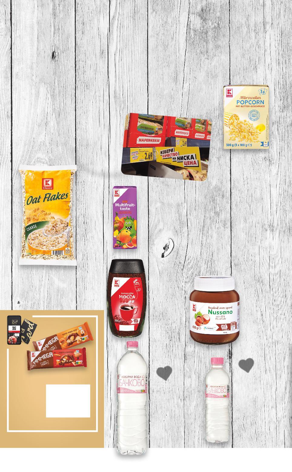 Отстъпката с Kaufland Card e изчислена спрямо стандартната текуща цена, на която продуктът се предлага в хипермаркета. Цените са валидни за посочените на последна страница хипермаркети Стоките се продават в количества, обичайни за едно домакинство Всички цени са в лева с включен ДДС Всички артикули се предлагат без декорация Снимките са примерни ни -33% 0,39 0,59 -23% 0,99 1,29 3,99 само -16% 0,49 0,59 -40% 0,29 0,49 -10% 1,69 1,89 -14% 5,99 6,99 -11% 3,99 с4,49 4,49 амо само Сок мултивитамин 20% 0,2 л (1 л = 1,95) Овесени ядки класик или фини 500 г (1 кг = 1,98) Лешников крем Nussano 400 г (1 кг = 9,98) Изворна вода 1,5 л PET (1 л = 0,33) Пуканки за микровълнова фурна сол или масло 3 х 100 г (1 кг = 5,64) Изворна вода 0,5 л PET (1 л = 0,58) Разтворимо кафе Mocca 100% робуста 200 г (1 кг = 29,95) K-CLASSIC Шоколад различни видове 300 г (1 кг = 13,30) Цена с KAUFLAND CARD ТЪРСИ ЖЪЛТИТЕ ЕТИКЕТИ В НАШИТЕ ХИПЕРМАРКЕТИ НАД 800 K-CLASSIC ПРОДУКТА ЩЕ НАМЕРИШ ПРИ НАС ИЗБЕРИ НИСКА ЦЕНАКАЧЕСТВО НА С НАШИТЕ СОБСТВЕНИ МАРКИ S24-BG-KW39-LFT-NMP1_L-1000-10 24