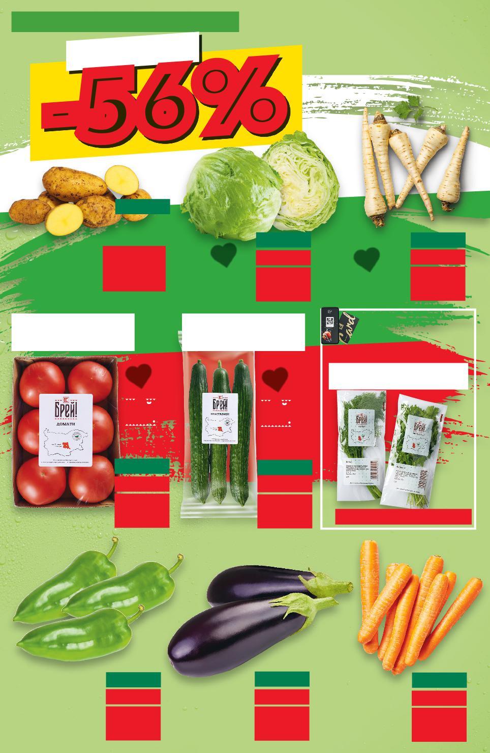 ПЛОДОВЕ И ЗЕЛЕНЧУЦИ Цените са валидни за посочените на последна страница хипермаркети. Стоките се продават в количества, обичайни за едно домакинство. Всички цени са в лева с включен ДДС. Всички артикули се предлагат без декорация. Снимките са примерни. О П -56% -56% Клас: I Клас: I Клас: I Клас: I Клас: I Клас: I -15% ОТСТЪПКА С KAUFLAND CARD ЗА ВСИЧКИ ПРЕСНИ, РЯЗАНИ ПОДПРАВКИ Опитай новите ни видове Клас: I само 4,99 Домати 1 кг (1 кг = 4,99) ✓ от района на Стара Загора ✓ от района на Стара Загора само 4,49 -23% 2,29 2,99 -22% 3,49 4,49 -34% 3,29 4,99 -25% 1,49 1,99 -25% 1,49 1,99 2,99 -56% 1,29 Пресни картофи България кг