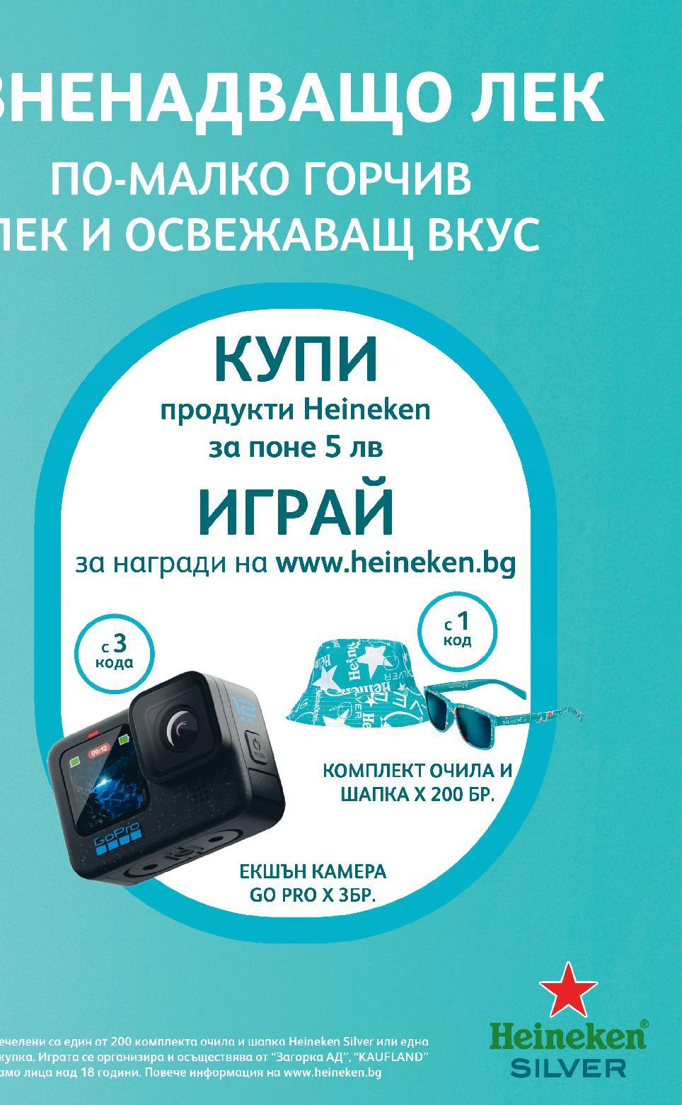 на В периода от 10.06.2024 г. до 07.07.2024 г. първата покупка за деня на стойност поне 20 лв. с използвана дигитална Kaufland Card или физическа Kaufland Card, добавена към Kaufland Card профил в мобилното приложение на Kaufland, отключва възможност за завъртане на Колелото на наградите в мобилното приложение, валидно 72 часа. Можеш да спечелиш купон с 50% отстъпка за различни продукти или купон за продукти на стойност 1 стотинка или 50 стотинки, или купон за продукти на стойност 1 лев, или отстъпка от сметката, или купон за участие в теглене за 1 от 100 златни топки с личен автограф от Христо Стоичков. УЧАСТИЕТО Е ОБВЪРЗАНО С ПОКУПКА. Научете повече на kaufland.bg. ЗАВЪРТИ И ИГРАЙ ЗА 1 ОТ100 ТОПКИ С АВТОГРАФ ОТ ХРИСТО СТОИЧКОВ Цените са валидни за посочените на последна страница хипермаркети. Стоките се продават в количества, обичайни за едно домакинство. Всички цени са в лева с включен ДДС. Всички артикули се предлагат без декорация. Снимките са примерни. + Активирай за 20 точки + Активирай за 20 точки а 2 то и + Активирай за 20 точки -2 % ОТСТЪПКА С KAUFLAND CARD ЗА ВСИЧКИ КИСЕЛИ МЛЕКА ВЕДРАРЕ -25% ОТСТЪПКА С KAUFLAND CARD ЗА АРТИКУЛИ ЖИРНОВЪ -25% ОТСТЪПКА С KAUFLAND CARD ЗА ВСИЧКИ СНАКСОВЕ BEST FOODS Важи oт 17.06.2024 до 23.06.2024 г. Отстъпката с Kaufland Card e изчислена спрямо текущата цена, на която продуктът се предлага в магазина. за 20 точки за 20 точки S74-BG-KW25-LFT-WE_1_L-1000-10 74