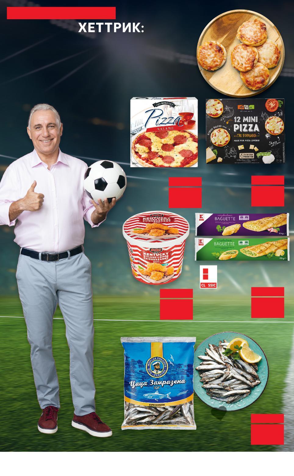 Всички Kaufland Card отстъпки са изчислени спрямо стандартната текуща цена, на която продуктът се предлага в хипермаркета. *Със звездичка са обозначени артикулите, които са специално предложение до изчерпване на наличностите. Kaufland не носи отговорност за печатни грешки. за кратко при нас за кратко при нас за кратко при нас -20% 5,99 7,49 -28% 4,99 6,99 -33% 79,99 119,90 -15% 5,49 6,49 -34% 3,49 5,29 -36% 3,99 6,29 2000 W 4,99* 5,99* 10,99* -12% 6,99 7,99 -15% 3,79 4,49 6,89 -50% 3,39 Кебапчета или Кюфтета смес 480 г (1 кг = 12,48) ТАНДЕМ Наденица различни видове вакуум опаковка 300 г (1 кг = 16,64) Контактен грил Black Angus бургер от мраморно говеждо месо 250 г (1 кг = 21,96) САМИ-М Панирани топени сиренца или Панирани пръчици моцарела замразени 250 г (1 кг = 13,96) САМИ М Панирани пилешки хапки различни видове 400 г (1 кг = 9,98) САМИ-М Парти хапки с кашкавал замразени 300 г (1 кг = 11,30) Наденички в бекон 300 г (1 кг = 16,64) Наденици от пилешко месо 350 г (1 кг = 17,12) Барбекю микс 900 г (1 кг = 12,22) AMADORI Пилешки крила различни видове 500г (1 кг = 13,98) AMADORI Пилешки пуканки 250г (1 кг = 15,16) 3 ГОДИНИ ГАРАНЦИЯ Ново Ново със сосове Heinz кетчуп и майонеза S15-BG-KW24-LFT-FOOTBALL_1_2_R-1000-10 15