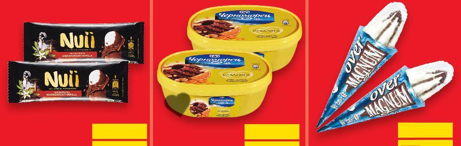 Сладолед на клечка различни вкусове 2 х 64 - 68 г (1 кг = до 38,21) MAGNUM OVER Сладолед различни вкусове 2 х 134 - 155 г (1 кг = до 17,13) ASPASIA Негазирана напитка различни видове 2 х 2 л PET (1 л = 0,75) TRICKY POPS Пуканки за микровълнова 2 x 80 г (1 кг = 8,69) S10-BG-KW24-LFT-1PLUS1_3_1_L-6400-10 10