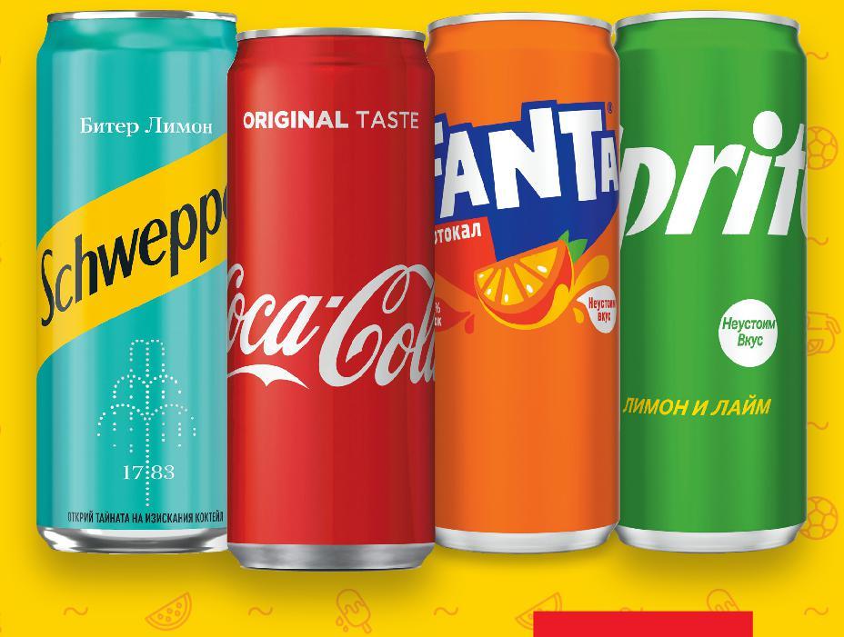 -27% 1,15 COCA COLA/FANTA/ SPRITE/SCHWEPPES Газирана напитка различни видове 0,33 л кен (1 л = 3,49) И -27% -27% ОТ ПОНЕДЕЛНИК, 24.06. ДО НЕДЕЛЯ, 30.06. S10-BG-KW26-LFT-Online_TS3_L-1000-10 10