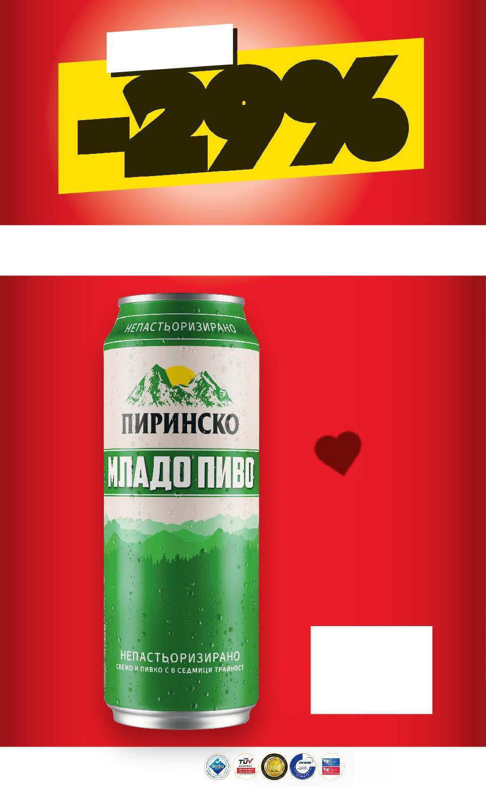 -29% 1,09 Д ПИРИНСКО Младо пиво 4,4% vol 0,5 л кен (1 л = 1,98) И С -29% -29% ОТ ПОНЕДЕЛНИК, 24.06. ДО НЕДЕЛЯ, 30.06. S2-BG-KW26-LFT-Online_TS2_L-1000-10 2