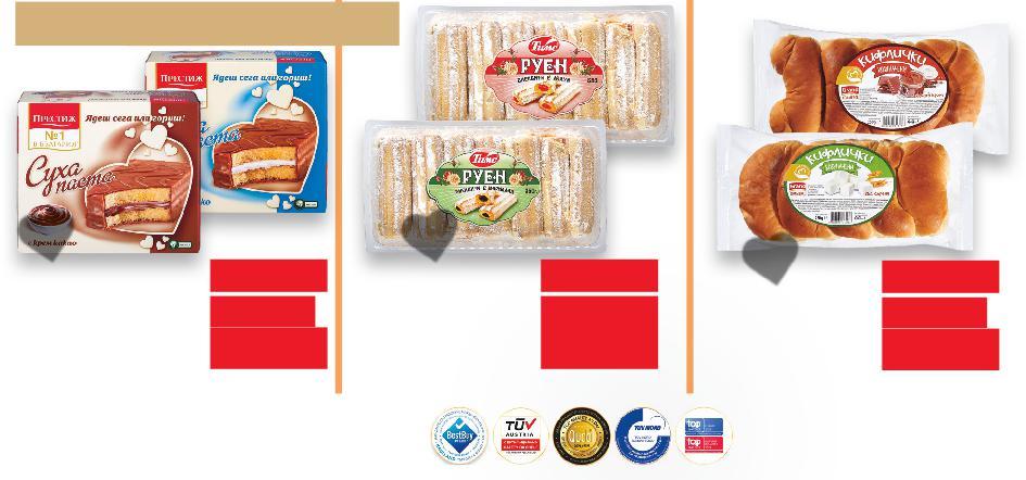 Търсете логото на TÜV Nord за сертифицираните продукти Сертификатът TÜV Austria важи за мляно месо Шеф Месар и кайма Брей! от итрина с обслужване е о ото цираните 5-ЗВЕЗДНО ПАЗАРУВАНЕ СПЕСТИ ДО СПЕСТИ - % ПЕКАРНА КАЧЕСТВЕНИ ПЕЧИВА ПРЯСНО ИЗПЕЧЕНИ ХЛЕБЧЕТА И ЗАКУСКИ ВСЕКИ ДЕН ЗАДЪЛЖИТЕЛЕН ТЕСТ И ПРОБНО ПЕЧЕНЕ НА ВСЕКИ НОВ ПРОДУКТ -30% 0,69 0,99 Бутерка с шоколад 70 г (1 кг = 9,86) 1,69 -50% 0,84 Селска вита баничка различни видове 117 г (1 кг = 7,18) 7,49 -46% 3,99 Баница със сирене и извара 560 г (1 кг = 7,13) -33% 0,59 0,89 Кроасан с 24% масло 65 г (1 кг = 9,08) -34% 0,65 0,99 -44% 0,49 0,89 -28% 0,89 1,25 -31% 1,09 1,59 -28% 0,89 1,25 Донът с млечен шоколад 55 г (1 кг = 11,82) Пърленка по сръбска рецепта 160 г (1 кг = 3,07) Закуска пица 95 г (1 кг = 9,37) Бял пшеничен хляб 450 г (1 кг = 2,43) Закуска с кайсия и крем 85 г (1 кг = 10,48) S26-BG-KW26-LFT-BED_3_1_L-1000-10 26