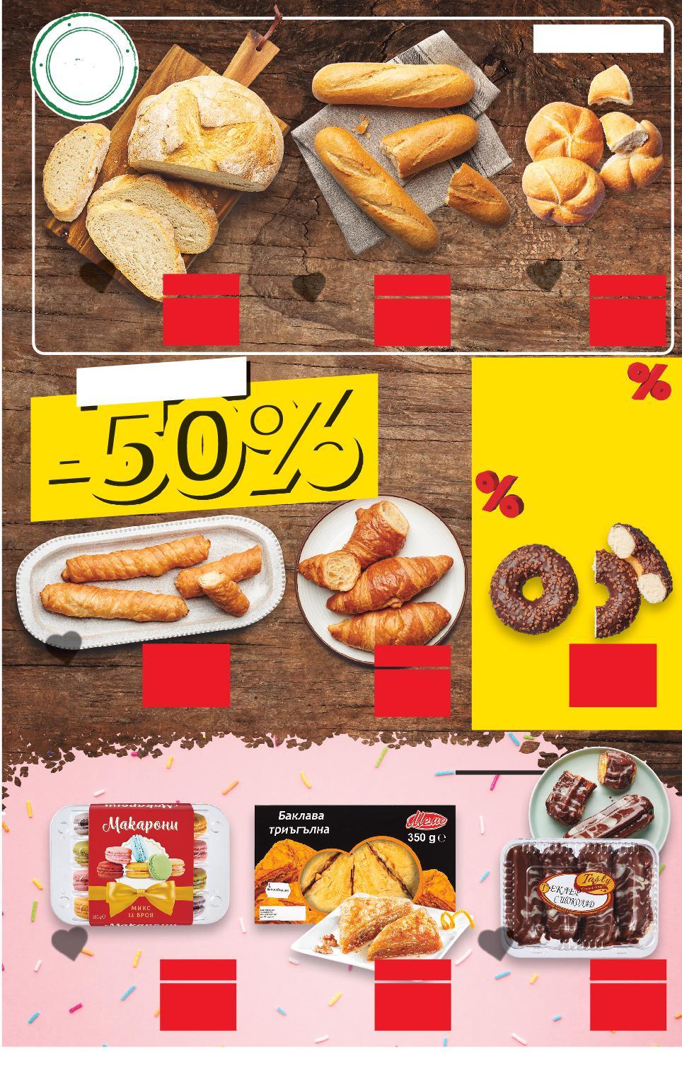 Всички Kaufland Card отстъпки са изчислени спрямо стандартната текуща цена, на която продуктът се предлага в хипермаркета. *Със звездичка са обозначени артикулите, които са специално предложение до изчерпване на наличностите. Kaufland не носи отговорност за печатни грешки. РАЗНООБРАЗИЕ ОТ ДЕСЕРТИ СПЕСТИ ДО СПЕСТИ -50% -47% 0,10 0,19 -32% 0,25 0,37 -21% 1,49 1,89 -33% 3,99 5,99 -49% 2,99 5,89 -28% 8,99 12,49 -33% 0,59 0,89 ПЕКАРНА ТОП ОФЕРТА ОТ ПОНЕДЕЛНИК, 20.05. ДО СРЯДА, 22.05. Земел бял 60 г (1 кг = 1,67) Бяла багета 110 г (1 кг = 2,28) Хляб със закваска 500 г (1 кг = 2,98) TASTY Еклер с шоколад 4 бр. 400 г (1 кг = 9,98) МЕМО Баклава различни видове 350 г (1 кг = 8,55) MJCATERING Макарони микс 12 бр. 180 г (1 кг = 49,95) Кроасан с 24% масло 65 г (1 кг = 9,08) 1,09 0,99 -50% -40% 0,54 0,59 Баничка различни видове 85 г (1 кг = 6,36) Донът с млечен шоколад 55 г (1 кг = 10,73) S25-BG-KW21-LFT-BED_2_2_R-1000-10 25