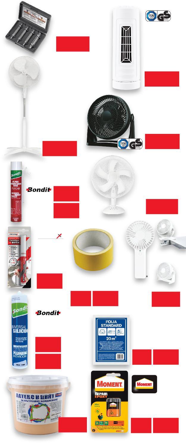 Всички Kaufland Card отстъпки са изчислени спрямо стандартната текуща цена, на която продуктът се предлага в хипермаркета *Със звездичка са обозначени артикулите, които са специално предложение до изчерпване на наличностите. Kaufland не носи отговорност за печатни грешки. ички 8 броя 14,99* 29,99* 29,99* 4,99 4,99* 34,99 0,89 2,99 5,99 5,99 6,99 39,99* 3,99 9,99* 8,99* -25% 119,90 159,90 -16% 5,99 1,29 -31% 4,49 -33% 7,99 -25% 9,99 -30% 6,49 -38% PARKSIDE® Мултифункционална стълба до 352 см, до 150 кг Цена с KAUFLAND CARD Минивентилатор тип кула, височина 35 см, кабел 180 см, 30 W Настолен вентилатор Ø 22 см, 21 W PARKSIDE® Комплект валяци различни видове PARKSIDE® Комплект четки за боядисване Настолен вентилатор Ø30 см 46 x 34 x 24 см, 40 W Защитно фолио 4 x 5 м, 6 микрона Лепило Repair Epoxy двукомпонентно, 6 мл Инструмент за винтове Маркер за възстановяване на фуги Двойно лепящо тиксо 50 мм x 15 м Полиуретанова пяна 750 мл Вентилатор на стойка 105-125 x 66 x 66 см 45 W Силикон универсален 280 г Минивентилатор 3 степени, с батерии ТОРНАДО Боя латекс различни цветове 5 кг 3 ГОДИНИ ГАРАНЦИЯ 3 ГОДИНИ ГАРАНЦИЯ 3 ГОДИНИ ГАРАНЦИЯ 3 ГОДИНИ ГАРАНЦИЯ S63-BG-KW24-LFT-NF_1_2_R-1000-10 63