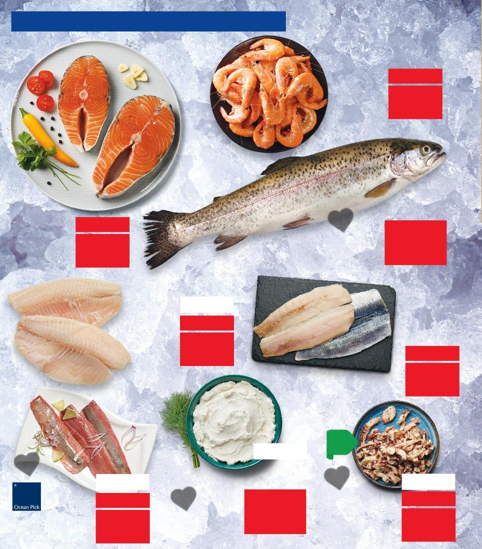 Цените са валидни за посочените на последна страница хипермаркети. Стоките се продават в количества, обичайни за едно домакинство. Всички цени са в лева с включен ДДС. Всички артикули се предлагат без декорация. Снимките са примерни. На последна страница може да видиш дали в твоя Kaufland предлагаме риба и морски деликатеси от витрина с обслужване или на самообслужване. РИБА И МОРСКИ ДЕЛИКАТЕСИ РИБА И МОРСКИ ПилешкиFRANGOSUL дробчета замразени Ново ТОП ОФЕРТА ОТ ПОНЕДЕЛНИК, 10.06. ДО СРЯДА, 12.06. -28% 34,99 48,99 -33% 7,99 11,99 -10% 35,99 39,99 -20% 11,99 14,99 -25% 5,99 7,99 -31% 15,99 23,49 -26% 17,99 24,49 -23% 19,99 25,99 6,99 -35% 4,49 Мариновани пипала от калмари кг (1 кг = 34,99) Херинга филе див улов в Исландия размразено кг Сьомга котлет аквакултури в Норвегия пресен кг Болярска баница с кашкавал замразена 5 х 190 г 950 г (1 кг = 12,63) Атлантическа мерлуза изчистена замразена кг Пушена сельодка - розова кг Скариди бланширани размразени кг Тилапия филе аквакултури в Китай размразено кг FRANGOSUL Пилешки дробчета замразени 1 кг 14,99 17,49 -26% -42% 10,99 9,99 Пъстърва изчистена прясна кг Разбит хайвер с пресен копър кг ЗАМРАЗЕНИ ХРАНИ S40-BG-KW24-LFT-FIP_1_L-1000-10 40