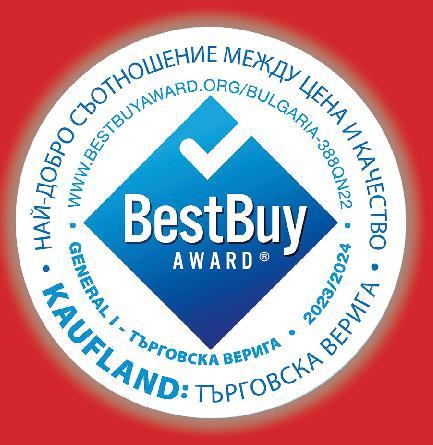 **Сертификатът Best Buy за най-добро съотношение ценакачество е по данни на проучване на швейцарската организация ICERTIAS. Повече на kaufland.bg.