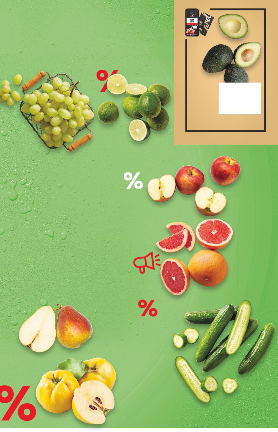 Отстъпката с Kaufland Card e изчислена спрямо стандартната текуща цена, на която продуктът се предлага в хипермаркета. Цените са валидни за посочените на последна страница хипермаркети. Стоките се продават в количества, обичайни за едно домакинство. Всички цени са в лева с включен ДДС. Всички артикули се предлагат без декорация. Снимките са примерни. СПЕСТИ ДО -42% ОТ ЦЕНАТА СУПЕР СВЕЖО. СУПЕР ИЗГОДНО -33% 3,99 5,99 само с5,99 амо Авокадо Клас: I 500 г в опаковка (1 кг = 7,98) Цена с KAUFLAND CARD 2,79 само -25% 1,49 1,99 -12% 0,69 0,79 1,99 само -42% 2,89 4,99 1,79 2,49 само само Късоплодни краставици Клас: I кг Лимети Клас: I бр. (1 бр. = 0,69) Грейпфрут Клас: I едър размер кг (1 кг = 1,99) Бяло грозде без семки Клас: I кг (1 кг = 2,89) Ябълки Бребърн Клас: I кг Круши Маргарет Клас: I кг Дюли Клас: I кг ПЛОДОВЕ И ЗЕЛЕНЧУЦИ S6-BG-KW47-LFT-OGP_L-1000-10 6