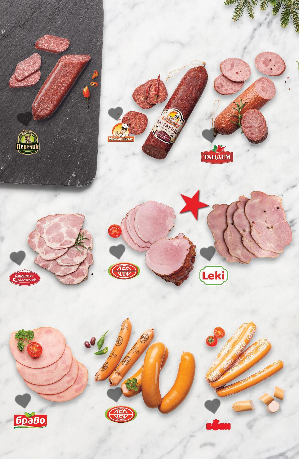 Цените са валидни за посочените на последна страница хипермаркети. Стоките се продават в количества, обичайни за едно домакинство. Всички цени са в лева с включен ДДС. Всички артикули се предлагат без декорация. Снимките са примерни. РЕЖЕМ ЦЕНИТЕ Н О Н -39% 19,99 32,99 -35% 23,99 36,99 17,89* само -30% 6,95 9,99 -21% 9,59 12,29 -37% 9,99 15,99 -27% 12,99 17,89 24,99 само -0% само 9,89 КОЛБАСИ ОТ ВИТРИНА С ОБСЛУЖВАНЕ Сух колбас планински кг (1 кг = 19,99) Луканков салам Амбарица сурово-сушен от свинско и говеждо месо кг (1 кг = 23,99) Луканка Родопска кг (1 кг = 17,89) Кренвирши кг (1 кг = 6,95) Наденица Македонска или Лионска кг (1 кг = 9,59) Пуешки бут формован кг (1 кг = 9,99) Жарена шунка Вита варено-пушена кг (1 кг = 12,99) Свински врат Монтана печен кг (1 кг = 24,99) Свински врат варено-пушен кг (1 кг = 9,89) с червен и черен пипер с крехка коричка и със смлян черен пипер опушена с широколистна дървесина S10-BG-KW47-LFT-BED2_L-1000-10 10
