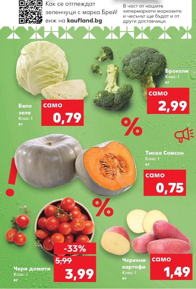 Отстъпката с Kaufland Card e изчислена спрямо стандартната текуща цена, на която продуктът се предлага в хипермаркета. *Със звездичка са обозначени артикулите, които са специално предложение до изчерпване на наличностите. Kaufland не носи отговорност за печатни грешки. В част от нашите хипермаркети морковите и чесънът ще бъдат и от други доставчици. -33% 1,99 с2,99 2,99 амо Хамедорея Стайнo растениe Ø 6 - 7 см бр. Цена с KAUFLAND CARD 34,99* само 1,79 само -33% 3,99 5,99 2,49* само 1,49 само 14,99* само 2,99 само 6,99 само 0,79 само 0,75 само Коледно дърво в саксия височина: 100-120см бр. Моркови Клас: I 1 кг в опаковка (1 кг = 1,79) Чери домати Клас: I кг Мини коледна звезда или мини каланхое Стайно растение Ø 6 см бр. Червени картофи Клас: I кг Антуриум Стайно растение Ø14 cм бр. Броколи Клас: I кг Чесън Клас: I 500 г в опаковка (1 кг = 13,98) Бяло зеле Клас: I кг Тиква Самсон Клас: I кг Как се отглеждат зеленчуци с марка Брей! виж на kaufland.bg ЦВЕТЯ ОТ ВТОРНИК 22.11. S7-BG-KW47-LFT-OGP_R-1000-10 7