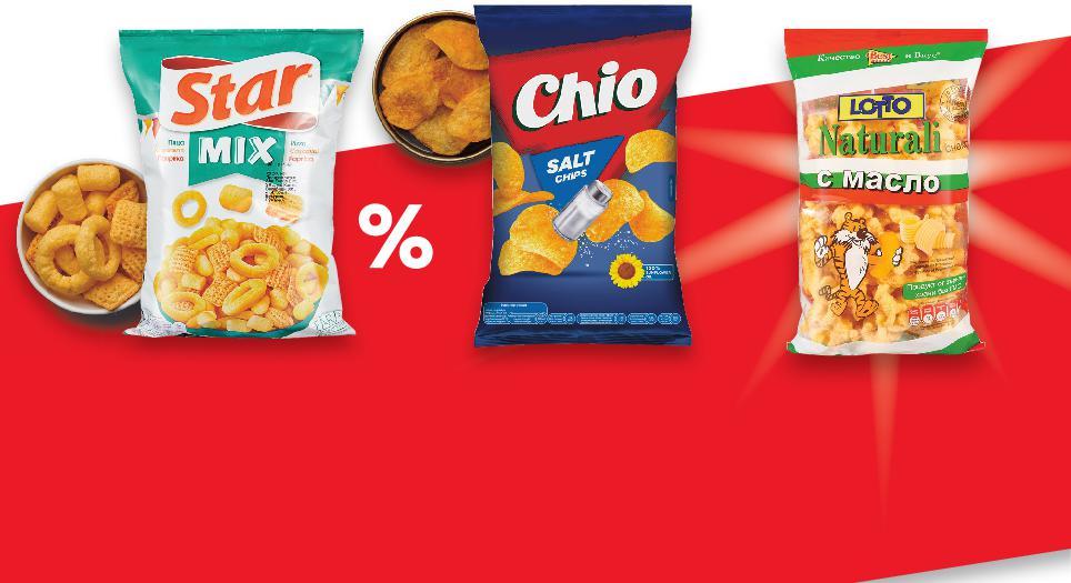 Отстъпката с Kaufland Card e изчислена спрямо стандартната текуща цена, на която продуктът се предлага в хипермаркета. *Със звездичка са обозначени артикулите, които са специално предложение до изчерпване на наличностите. Kaufland не носи отговорност за печатни грешки. 0,99 само 1,39 само 0,35 само -30% 2,19 3,15 0,99 само 1,99 само -40% 1,49 2,49 -26% 0,65 0,89 -41% 2,49 4,29само само OVI&SARI Кейк Идеал 90 г (1 кг = 9,00) 7 DAYS Кроасан Super Double различни видове 127 г (1 кг = 10,95) ГАЛЕНА Суха паста крем Гараш, маскарпоне или Nucrema 50 г (1 кг = 7,00) CHIO/CHIO LIGHT Чипс различни вкусове 125 - 140 г (1 кг = от 15,65) STAR Снакс пица, кашкавал или чили 90 г (1 кг = 11,00) АГИ Бутер сладки „Сърчица“ или Бутерки „Нели“ 180 г (1 кг = 11,06) SWEET WAY Руло ягода или какао 230 г (1 кг = 6,48) LOTTO NATURALI Снакс с масло 60 г (1 кг = 10,84) ТЕСТЕНИ ИЗДЕЛИЯ ЧИПС ДОМА Меденки 380 г (1 кг = 6,56) Цена с KAUFLAND CARD S23-BG-KW47-LFT-NMP2_R-1000-10 23