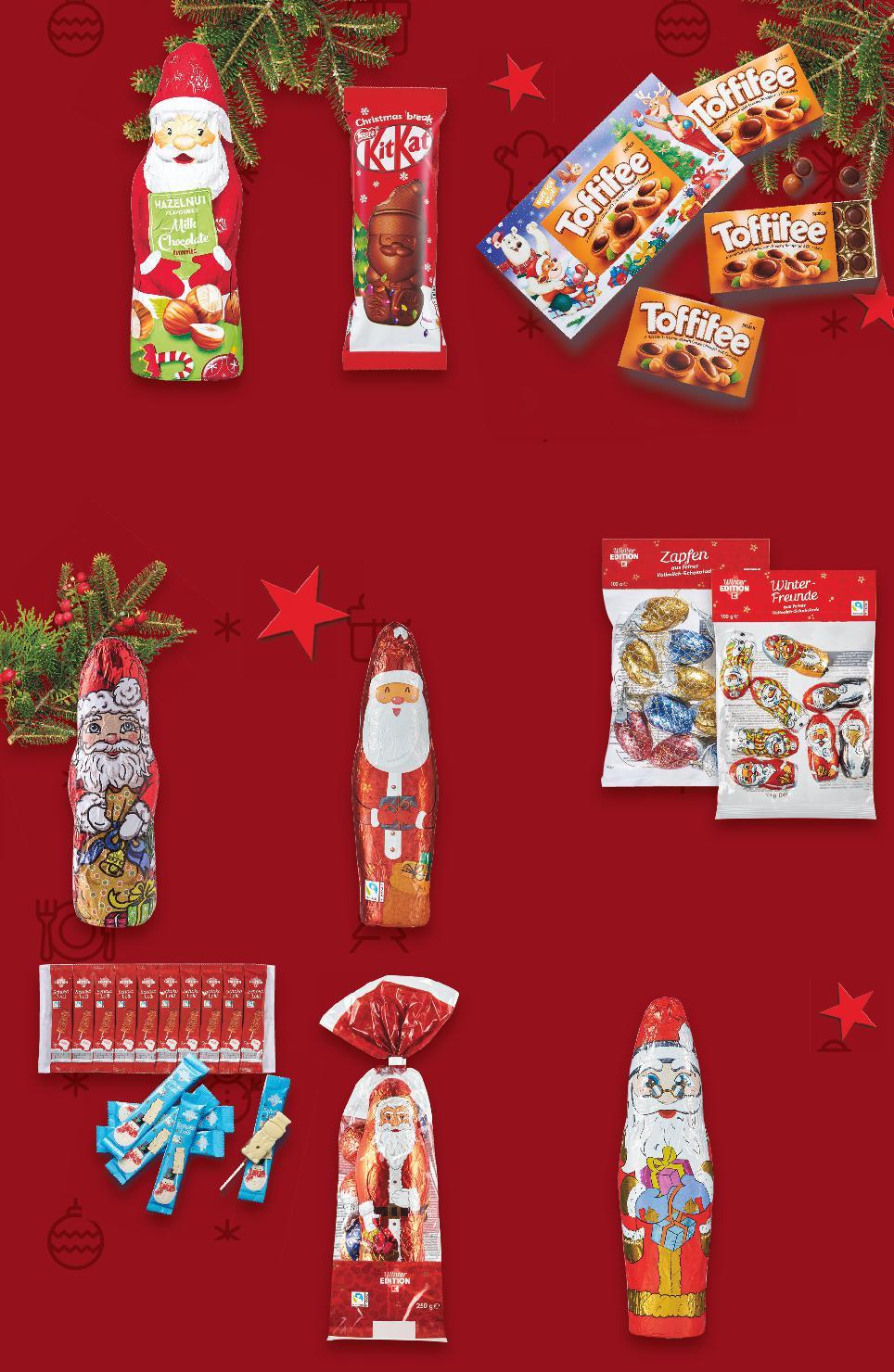*Със звездичка са обозначени артикулите, които са специално предложение до изчерпване на наличностите. Kaufland не носи отговорност за печатни грешки. -22% 8,69 11,19 -38% 1,29 2,09 -34% 1,69 2,59 -31% 4,39 6,39 -34% 2,79 4,29 -31% 2,19 3,19 -40% 0,89 1,49 -40% 0,59 0,99 -41% 1,99 3,39 TOFFIFEE Бонбони Коледен пейзаж 375 г (1 кг = 23,18) KIT KAT Шоколадова фигурка Дядо Коледа 29 г (1 кг = 44,49) TERRAVITA Шоколадова фигурка Дядо Коледа различни видове 90 г (1 кг = 18,78) Коледна торбичка с шоколадови фигурки 250 г (1 кг = 17,56) Шоколадова близалка Дядо Коледа или снежен човек 150 г (1 кг = 18,60) Шоколадови фигурки коледни различни видове 100 г (1 кг = 21,90) Шоколадова фигурка Дядо Коледа минимум 30% какао 60 г (1 кг = 14,84) COSMO Шоколадова фигурка Дядо Коледа 40 г (1 кг = 14,75) Шоколадова фигурка Дядо Коледа 150 г (1 кг = 13,27) минимум 30% какао S25-BG-KW47-LFT-WS1_R-1000-10 25
