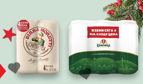 *Със звездичка са обозначени артикулите, които са специално предложение до изчерпване на наличностите. Kaufland не носи отговорност за печатни грешки. -15% 3,79 4,49 19,99* само -15% 7,99 9,49 -37% 1,99 3,19 -38% 0,89 1,45 -22% 6,99 8,99 -21% 1,79 2,29 -16% 2,99 3,59 -21% 10,99 13,99 -50% 1,99 3,99 2 литрa METALINGUS Крафт бира Porter 6,2% vol 0,33 л (1 л = 11,49) TEMPELIER Крафт бира Произход: Белгия 2 x 0,33 л + чаша (1 л = 30,29) HOBGOBLIN Крафт бира 5,2% vol 0,5 л + чаша (1 л = 15,98) АРИАНА Тъмна бира 5,5% vol 2 л РЕТ (1 л = 1,00) ШУМЕНСКО Авторско пиво Червеното злато 5,5% vol * Цената не включва амбалаж * Цена на амбалаж 0,10 лв. 0,5 л (1 л = 1,78) ROHOZEC Бира X и Y 2 X 0,5 л бутилка (1 л = 6,99) MADONNA Крафт бира Brune 5,2% vol 0,5 л (1 л = 3,58) ROCKET SCIENCE Крафт бира Amber Ale 5,1% vol 0,5 л (1 л = 5,98) CORSENDONK Крафт бира Agnus 7,5% vol 0,75 л (1 л = 14,66) LEFFE Тъмна бира Произход: Белгия 6,5 vol 0,33 л бутилка (1 л = 6,04) ПРОМОПАКЕТ ПРОМОПАКЕТ ПРОМОПАКЕТ червен лагер с карамелен малц, плътно тяло и наситен кехлибарен цвят S31-BG-KW47-LFT-BIER_R-1000-10 31