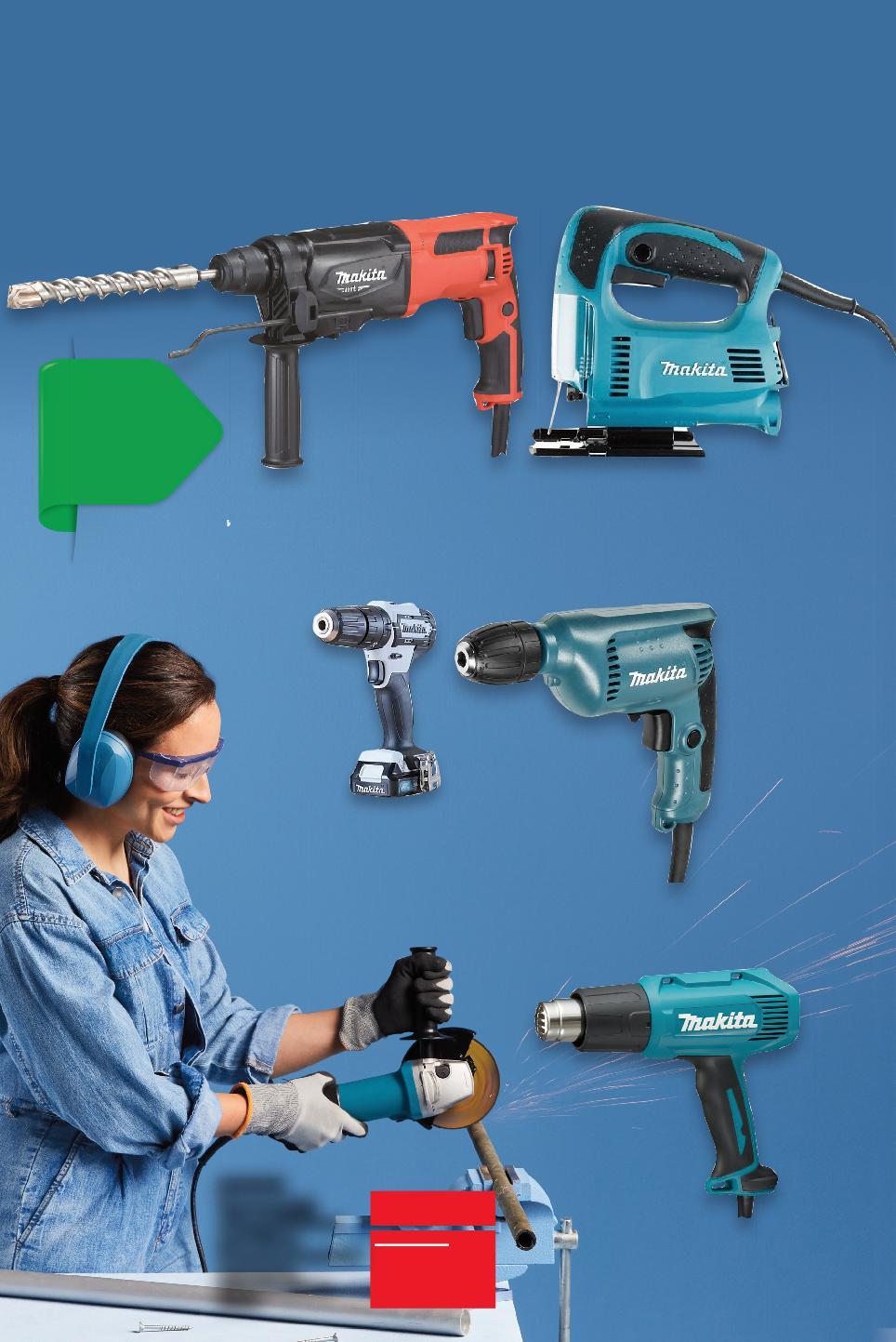 ✓ висококачествени електроинструменти с японско качество ✓ компактни, с висока издръжливост и ниска вибрация Цените са валидни за посочените на последна страница хипермаркети. Стоките се продават в количества, обичайни за едно домакинство. Всички цени са в лева с включен ДДС. Всички артикули се предлагат без декорация. Снимките са примерни. -28% 199,90 279,90 -17% 114,90 139,90 -14% 119,90 139,90 -19% 104,90 129,90 -28% 114,90 159,90 -33% 299,90 199,90 MAKITA Акумулаторен винтоверт за завинтване, пробиване и ударно пробиване на дърво, стомана, зидария, 2-степенна скоростна кутия, 0 - 1700 об./мин, литиево-йонна батерия MAKITA Ударна бормашина за пробиване в дърво и метал, обороти 0 - 3 000 мин, патронник 0,08 - 1 см, 23,4 x 6,4 x 18,3 см, 450 W MAKITA Прободен трион рязане в дърво и метал под ъгъл: 0° - 45°, ход на ножа 1,8 см, 21,7 x 7,7 x 19,7 см, 450 W MAKITA Перфоратор за пробиване, ударно пробиване или къртене на дърво, стомана, бетон, обороти 0 - 1200 мин, 36,2 x 7,1 x 19,4 см, 800 W MAKITA Ъглошлайф обороти 11000/мин, диск 12,5 см, възможност за работа с една ръка, 26,6 х 14 х 10,8 см, 720 W MAKITA Пистолет за горещ въздух термостат със защита от прегряване, температура 350 / 500° C, двустепенен ключ за регулиране на температурата, 23,3 х 8 х 20,8 см, 1600 W 3 ГОДИНИ ГАРАНЦИЯ 3 ГОДИНИ ГАРАНЦИЯ 3 ГОДИНИ ГАРАНЦИЯ 3 ГОДИНИ ГАРАНЦИЯ 3 ГОДИНИ ГАРАНЦИЯ 3 ГОДИНИ ГАРАНЦИЯ за ударно Ново S40-BG-KW47-LFT-NFP3_L-1000-10 40