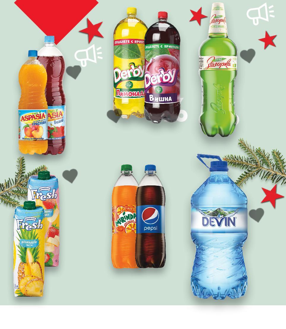 ИСКАШ ИЗГОДНИ ЦЕНИ? ПОЛУЧАВАШ ИЗГОДНИ ЦЕНИ! Автоматична помпа за вода с USB зареждане, за бутилки 3 - 19 л -50% 8,99 17,99 -34% 0,95 1,45 -39% 3,79 6,29 0,12 само 3,69 само 1,89 само -35% 26,99 41,99 -39% 16,99 27,99 -36% 11,99 18,99 7,99 само -31% 23,99 34,99 6,99 само Земел със сусам от нашата пекарна 60 г (1 кг = 2,00) Салата Снежанка 1 кг (1 кг = 3,69) Портокали Клас: I сладки и сочни кг Свински бут Елена сурово-сушен 40 дни поръска с чубрица кг (1 кг = 26,99) Кашкавал от краве мляко от нашата витрина кг (1 кг = 16,99) ПИРИНСКО Бира 4,4% vol 0,5 л кен (1 л = 1,90) ХОРЦЕТО Лютеница 560 г (1 кг = 6,77) KIT KAT Коледен календар с шоколадови лакомства 208 г (1 кг = 57,65) NUTELLA Лешников крем 700 г (1 кг = 11,42) JOHNNIE WALKER Шотландско уиски 40% vol 1 л (1 л = 23,99) Свински бут без кост от нашата витрина кг (1 кг = 6,99) ВСЯКА СЕДМИЦА-50%ДО НАМАЛЯВАМЕ ЦЕНИТЕ НА НАД 400 ПРОДУКТА Цените са валидни от 21.11.2022 до 27.11.2022 или до изчерпване на наличностите. Стоките се продават в количества, обичайни за едно домакинство. Всички цени са в лева с включен ДДС. Цените са валидни за посочените на последна страница хипермаркети. Kaufland не носи отговорност за печатни грешки. Всички артикули се предлагат без декорация. Снимките са примерни. Предложенията може да видиш и на kaufland.bg. Повече за Моите любими марки научи на kaufland.bg/ otlichiya. *Със звездичка са обозначени артикулите, които са специално предложение до изчерпване на наличностите. ОТ ПОНЕДЕЛНИК, 21.11.2022 ДО НЕДЕЛЯ, 27.11.2022 S1-BG-KW47-LFT-TS-1000-10