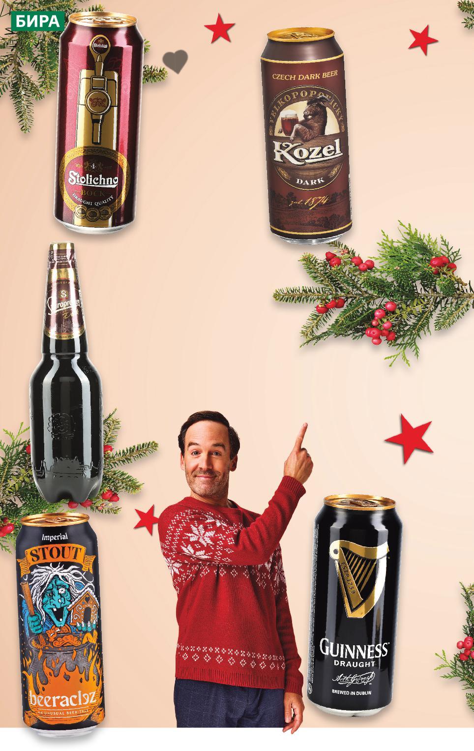 СВЕТЛИ ПРАЗНИЦИ С ТЪМНА БИРА Цените са валидни за посочените на последна страница хипермаркети Стоките се продават в количества, обичайни за едно домакинство Всички цени са в лева с включен ДДС. Всички артикули се предлагат без декорация. Снимките са примерни. ните -21% 1,69 2,15 -13% 2,19 1,89 2,89 само -30% 1,39 1,99 -28% 1,85 2,59 STOLICHNO BOCK Тъмна бира 6,5% vol 0,5 л кен (1 л = 3,38) KOZEL Тъмна бира Velkopopovicky Произход: Чехия 3,8% vol 0,5 л кен (1 л = 3,78) GUINNESS Тъмна бира Произход: Ирландия 4,2% vol 0,44 л кен (1 л = 6,57) BEERACLEZ Крафт бира Imperial Stout 7,5% vol 0,5 л кен (1 л = 2,78) STAROPRAMEN DARK Тъмна бира 4,4% vol 1 л PET (1 л = 1,85) S30-BG-KW47-LFT-BIER_L-1000-10 30