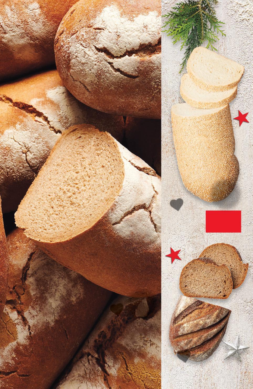 Цените са валидни за посочените на последна страница хипермаркети. Стоките се продават в количества, обичайни за едно домакинство. Всички цени са в лева с включен ДДС. Всички артикули се предлагат без декорация. Снимките са примерни. 0,99 0,75 само само само 1,35 ЗАДЪЛЖИТЕЛЕН ТЕСТ И ПРОБНО ПЕЧЕНЕ НА ВСЕКИ НОВ ПРОДУКТ ПРЯСНО ИЗПЕЧЕНИ ХЛЕБЧЕТА И ЗАКУСКИ ВЪВ ВСЕКИ МОМЕНТ ОТ ДЕНЯ КАЧЕСТВЕНИ ПЕЧИВА Ръжен хляб с малц 300 г (1 кг = 2,50) Хляб със сусамово семе 500 г (1 кг = 1,98) Хляб ръжено-пшеничен 800 г (1 кг = 1,69) ПЕКАРНА с ръжен квас S12-BG-KW47-LFT-BED3_L-1000-10 12