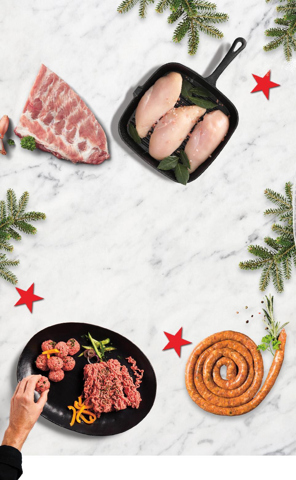 Цените са валидни за посочените на последна страница хипермаркети. Стоките се продават в количества, обичайни за едно домакинство. Всички цени са в лева с включен ДДС. Всички артикули се предлагат без декорация. Снимките са примерни. СУПЕР ПРЯСНО. СУ ЗГО О 10,99 само 5,99 само 9,79 само 7,99* само Пилешко филе от гърди прясно, охладено кг (1 кг = 10,99) Свинска кайма с подправки кг (1 кг = 5,99) Карначе кг (1 кг = 9,79) Свински ребра за грил кг (1 кг = 7,99) ОТ ИРЛАНДСКО ГОВЕЖДО, ПРЕЗ КАЧЕСТВЕНО ПИЛЕШКО ДО АГНЕШКО И СВИНСКО НАД 20 ПРЕСНИ МЕСНИ ПРЕДЛОЖЕНИЯ ОТ МЕСО РАЗНООБРАЗИЕ ПРЯСНО МЕСО ОТ ВИТРИНА С ОБСЛУЖВАНЕ S8-BG-KW47-LFT-BED1_L-1000-10 8