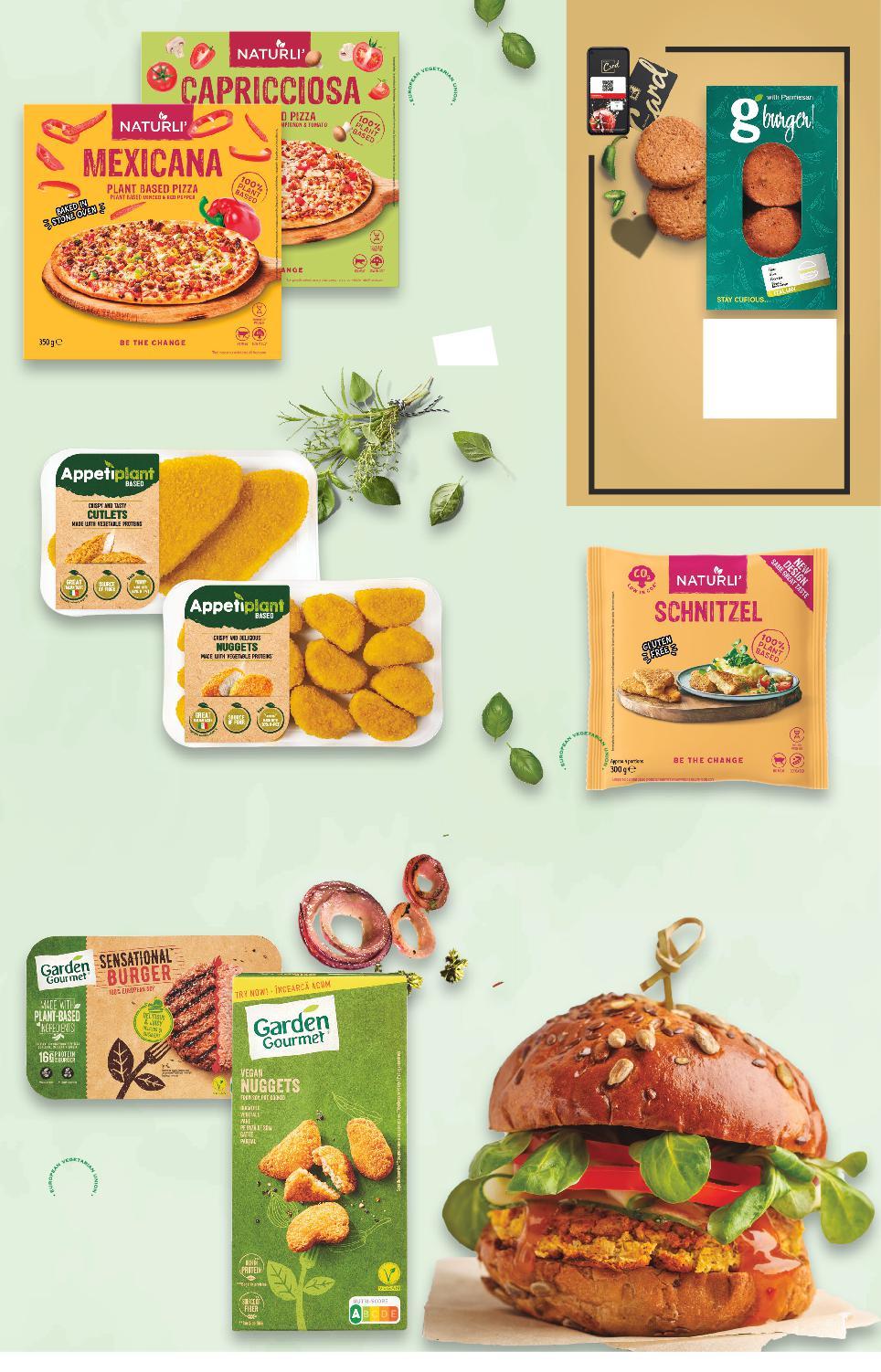 Отстъпката с Kaufland Card e изчислена спрямо стандартната текуща цена, на която продуктът се предлага в хипермаркета. *Със звездичка са обозначени артикулите, които са специално предложение до изчерпване на наличностите. Kaufland не носи отговорност за печатни грешки. -27% 7,99 10,99 -11% 6,99 7,89 -24% 3,79 4,99 -38% 7,99 12,99 -50% 5,99 11,99 само с11,99 амо NATURLI Веган шницел или Веган бургер замразен 300 - 320 г (1 кг = 26,64) NATURLI Веган пица Мексикана или Капричоза замразена 350 г (1 кг = 19,98) AMADORI Панирани хапки или Шницели вегетариански на растителна основа охладени 200 - 220 г (1 кг = 17,23) GARDEN GOURMET Бургер, Кюфтенца или Нъгетс замразени 226 - 300 г (1 кг = 35,36) G-BURGER Бургер веган или с пармезан 2 х 115 г (1 кг = 26,05) Цена с KAUFLAND CARD 11 S11-BG-KW01-CL1-Pano5_R-1000-10 11