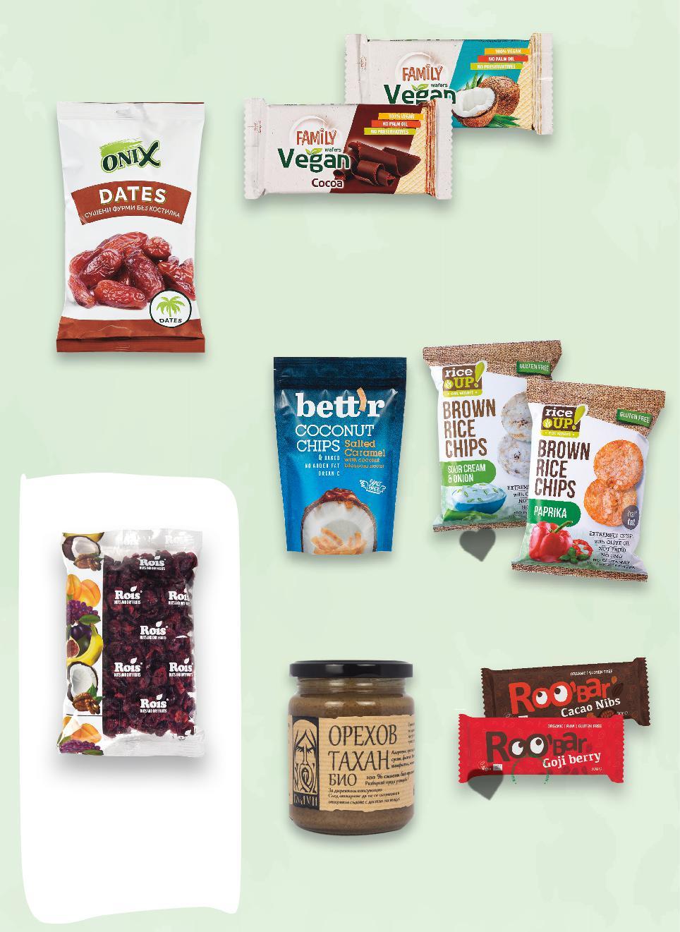 ВЕГАН НАСЛАДА -30% 2,29 3,29 -31% 10,99 15,99 -21% 1,25 1,59 -33% 1,19 1,79 -20% 2,39 2,99 -24% 3,99 5,29 -26% 1,09 1,49 В Kaufland може да платиш с: Имаш предложения, желания или въпроси към Kaufland – свържи се с нас! 0800 / 12 220 (Национален безплатен клиентски телефон) с работно време: понеделник – петък 08:00 – 18:30.Стоките се продават в количества, предназначени за домакинството. *Със звездичка са обозначени артикулите, които са специално предложение до изчерпване на наличностите. Kaufland не носи отговорност за печатни грешки. Всички предложения може да видиш и на kaufland.bg, facebook.com/kaufland.bulgaria ROIS Фурми без костилка ONIX 350 г (1 кг = 6,55) ROOBAR Био суров бар с какаови зърна и бадеми, чия и кокос или годжи бери без глутен 30 г (1 кг = 41,67) RICE UP Оризов чипс различни вкусове 60 г (1 кг = 19,84) BETTR Био кокосов чипс с карамел и сол 70 г (1 кг = 34,15) ROIS Червени боровинки сушени 200 г (1 кг = 19,95) БЕЛУН Био орехов тахан 250 г (1 кг = 43,96) FAMILY Вафла Vegan какао или кокос 50 г (1 кг = 21,80) S12-BG-KW01-CL1-RS-1000-10