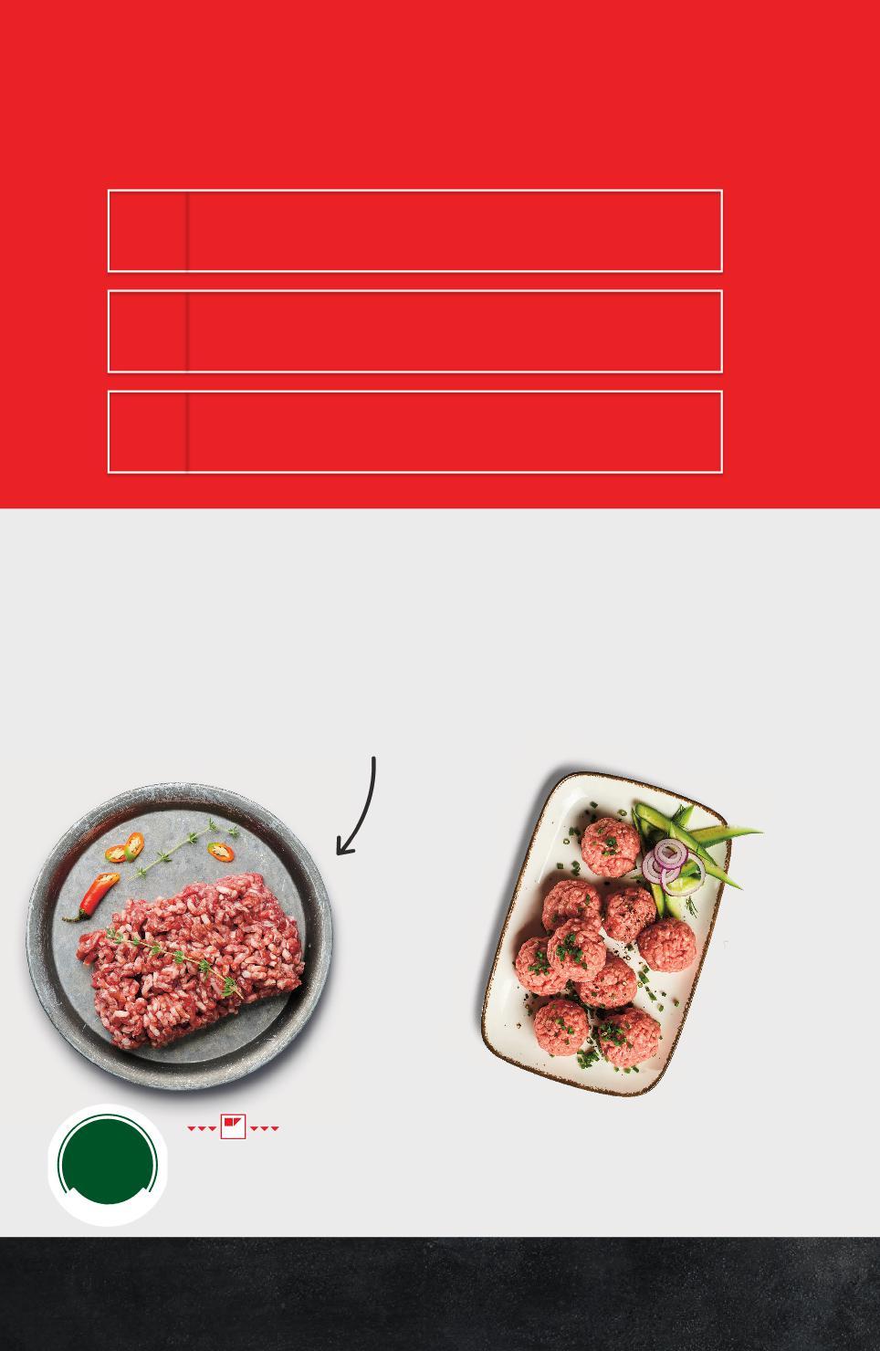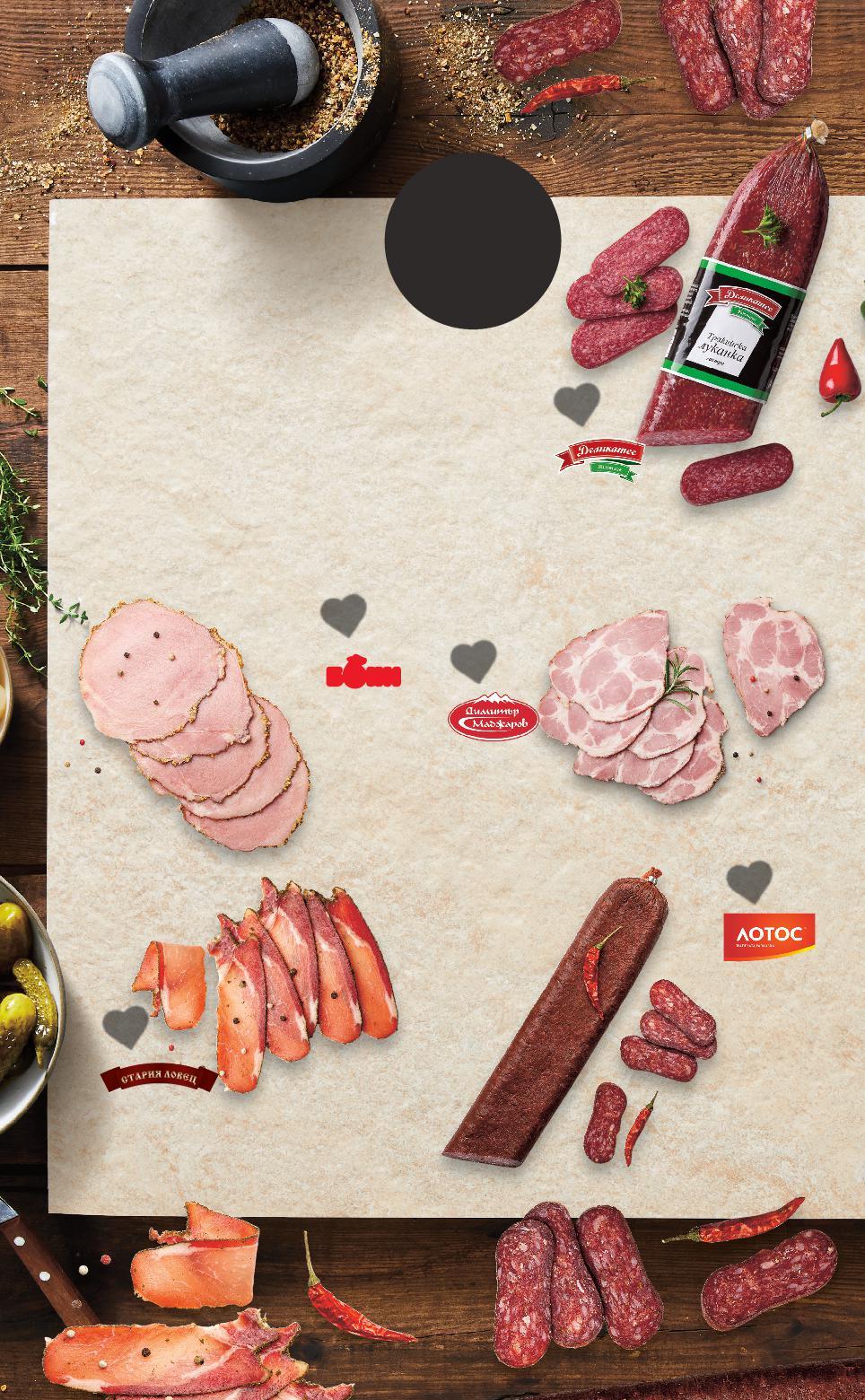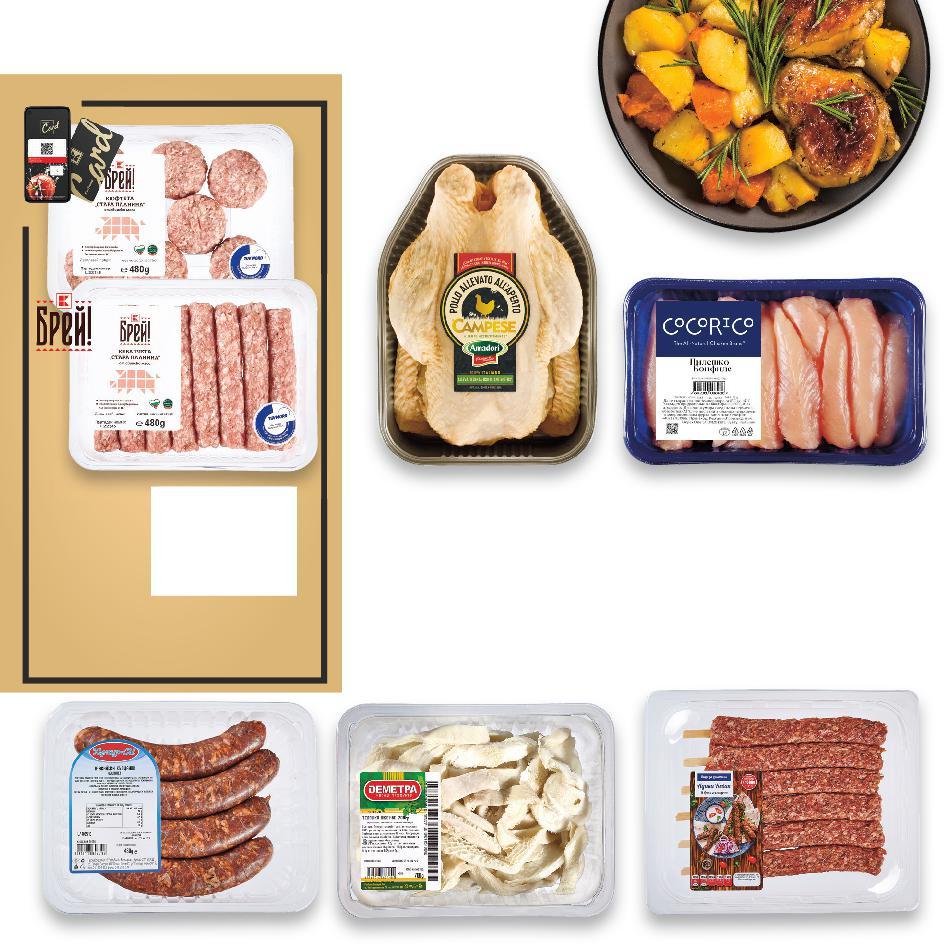 СТЕПЕНЕН КОНТРОЛ НА КАЧЕСТВОТО ОТ TÜV AUSTRIA ВИДА МЕСНИ ПРОДУКТИ ГАРАНТИРАНО КАЧЕСТВО Изследвания на взетите проби в независими лаборатории на взетите в независими Мониторинг на правилното транспортиране на продукцията на транспортиране на Проверка чрез „тайни клиенти“, които избират продукти за тест чрез клиенти“ които продукти за тест предварително овкусена кайма за лесно приготвяне БЪЛГАРСКО КАЧЕСТВО НА СВЕТОВНО НИВО 100% прясно месо: без соя, без подправки, без подобрители МЛЯНО МЕСО "ШЕФ МЕСАР" 3 2 1 Цените са валидни за посочените на последна страница хипермаркети. Стоките се продават в количества, обичайни за едно домакинство. Всички цени са в лева с включен ДДС. Всички артикули се предлагат без декорация. Снимките са примерни. -16% 9,99 11,99 -18% 8,99 10,99 БРЕЙ! Kайма смес от нашата витрина кг (1 кг = 9,99) ШЕФ МЕСАР Мляно свинско месо от нашата витрина кг (1 кг = 8,99) TÜV AUSTRIA HELLAS LTD СЕРТИФИЦИРАНО SAFETY ON SHELF CERT. NO.: 20377230008189 TÜV AUSTRIA HELLAS LTD СЕРТИФИЦИРАНО SAFETY ON SHELF CERT. NO.: 20377230008189 S14-BG-KW04-LFT-BED1_L-1000-10 14