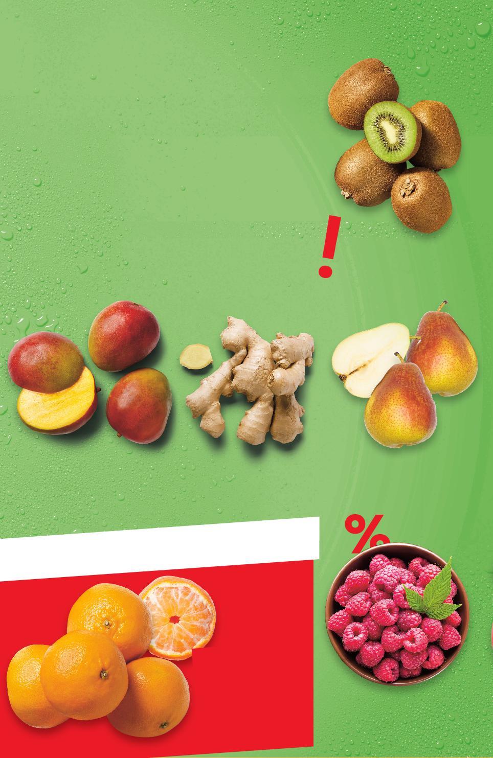 ЦЕНОРАЗБИВАЧ Цените са валидни за посочените на последна страница хипермаркети. Стоките се продават в количества, обичайни за едно домакинство. Всички цени са в лева с включен ДДС. Всички артикули се предлагат без декорация. Снимките са примерни. КОНТРОЛ НА СВЕЖЕСТТА ПРЕЗ ЧАС СТРИКТЕН КОНТРОЛ ОТ ЗАСАЖДАНЕТО ДО РАФТА СВЕЖИ ПЛОДОВЕ И ЗЕЛЕНЧУЦИ 5,99 само -30% 1,79 2,59 -16% 2,49 2,99 -44% 0,99 1,79 -14% 2,99 3,49 Киви Клас: I кг Круши Маргарет Клас: I кг Манго Клас: I бр. Джинджифил корени Клас: I кг Малини добре узрели и сладки Клас: I 125 г в опаковка (1 кг = 23,92) с отличителен аромат и мек вкус ПЛОДОВЕ И ЗЕЛЕНЧУЦИ -33% 1,65 2,49 Мандарини Клас: I кг (1 кг = 1,65) 33% 3% S12-BG-KW04-LFT-OGP_L-1000-10 12