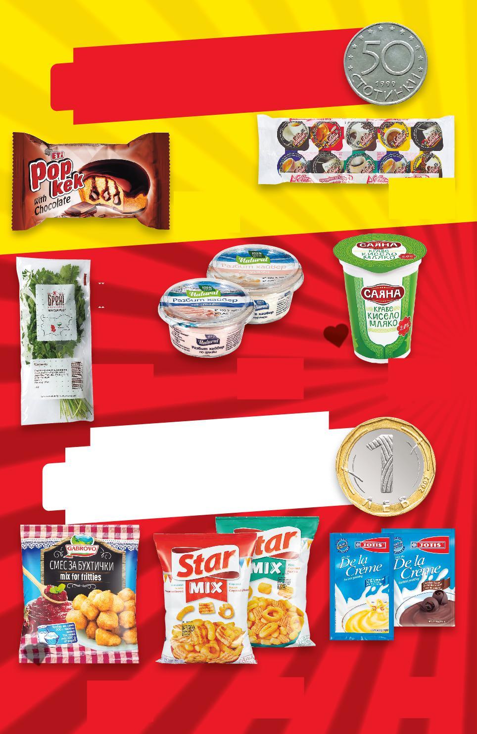 Цените са валидни за посочените на последна страница хипермаркети. Стоките се продават в количества, обичайни за едно домакинство. Всички цени са в лева с включен ДДС. Всички артикули се предлагат без декорация. Снимките са примерни. -37% 1,00 1,59 -28% 1,00 1,39 -15% 1,00 1,19 -31% 1,00 1,45 -49% 0,50 0,99 -20% 1,00 1,25 -43% 0,50 0,89 -49% 1,00 1,99 0,50 0,50 0,50 0,50 1,00 1,00 1,00 1,00 1,00 1,00 1,00 1,00 1,00 1,00 1,00 JOTIS DE LA CRÈME Пудинг без варене ванилия, ягода или шоколад 70 - 84 г (1 кг = от 11,90) STAR Снакс пица, кашкавал или чили 90 г (1 кг = 11,12) Магданоз Клас: I 1 връзка САЯНА Кисело мляко 2% масленост 400 г (1 кг = 2,50) MY DAY Продукт за кафе с растителни мазнини 10 бр. х 7,5 г (1 кг = 6,67) ETI Кейк какао Popkek 45 г (1 кг = 11,12) GABROVO Смес за бухти или за мекици 180 г (1 кг = 5,56) Разбит хайвер различни видове 120 г (1 кг = 8,34) В О СПЕСТЯВАЙ С KAUFLAND! Ч О В О О СПЕСТЯВАЙ С KAUFLAND! S2-BG-KW04-LFT-SPAR1_L-1000-10 2