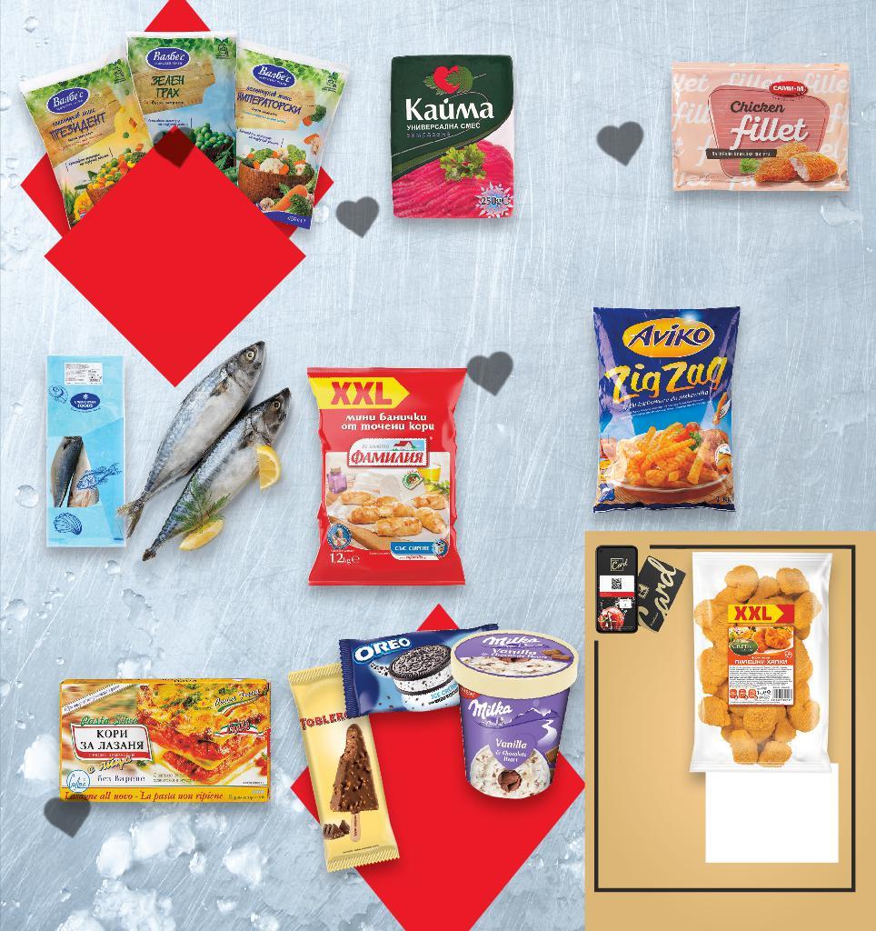 *Със звездичка са обозначени артикулите, които са специално предложение до изчерпване на наличностите. Kaufland не носи отговорност за печатни грешки. -30% ОТСТЪПКА ЗА ИЗБРАНИ ЗАМРАЗЕНИ ЗЕЛЕНЧУЦИ С МАРКА ВАЛБЕС -30% ОТСТЪПКА ЗА СЛАДОЛЕДИ С МАРКИ MILKA, OREO И TOBLERONE -42% 5,99 10,49 -50% 1,59 3,19 -35% 4,49 6,99 -27% 2,69 3,69 -16% 2,49 2,99 -16% 2,49 2,99 -48% 6,49 12,69 -10% 3,39 3,79 -46% 2,49 4,69 -29% 5,99 с8,49 8,49 амо само 1 кг САМИ-М Пилешко филе панирано със сусам или класик замразено 500 г (1 кг = 11,98) Кайма универсална или за принцеси замразена 250 г (1 кг = 6,36) Скумрия Scomber Japonicus едра, замразена Произход: Еквадор кг (1 кг = 4,49) БЕЛЛА Точени кори фини или пълнозърнести 400 г (1 кг = 6,73) Руска салата с шунка 1 кг (1 кг = 2,49) VERNADA Хумус с печен пипер, маслини или патладжани без изкуствени добавки 250 г (1 кг = 9,96) ФАМИЛИЯ Минибанички замразени 1,2 кг (1 кг = 5,41) AVIKO Бланширани картофи замразени 1 кг (1 кг = 3,39) SILVA Кори за лазаня замразени 500 г (1 кг = 4,98) CRETA FARMS Панирани пилешки хапки замразени 1 кг (1 кг = 5,99) Цена с KAUFLAND CARD ЗАМРАЗЕНИ ХРАНИ ДЕЛИКАТЕСИ ОТ ВИТРИНА НА САМООБСЛУЖВАНЕ Отстъпката с Kaufland Card e изчислена спрямо стандартната текуща цена, на която продуктът се предлага в хипермаркета. S23-BG-KW04-LFT-FIP_R-1000-10 23