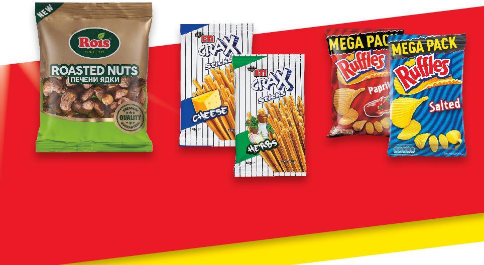 *Със звездичка са обозначени артикулите, които са специално предложение до изчерпване на наличностите. Kaufland не носи отговорност за печатни грешки. ТЕСТЕНИ ИЗДЕЛИЯ И СУШЕНИ ПЛОДОВЕ ЯДКИ, ЧИПС И СОЛЕТИ -10% 1,69 1,89 -33% 0,39 0,59 -20% 1,19 1,49 -33% 2,99 4,49 -22% 3,49 4,49 -30% 4,99 7,19 -38% 2,99 4,89 -37% 4,29 6,89 -29% 0,39 0,55 7 DAYS Кроасан Choco с крем какао или крем ванилия 60 г (1 кг = 28,17) ETI Солети с подправки, чушка или кашкавал 40 г (1 кг = 9,75) 7 DAYS Bake Rolls различни видове 80 г (1 кг = 14,88) АМФОРА Суха паста 350 г (1 кг = 8,55) SERENA Сушени сливи без костилка 200 г (1 кг = 17,45) NESTLE FITNESS Зърнена закуска различни вкусове 355 - 375 г (1 кг = от 13,31) RUFFLES Картофен чипс различни вкусове 260 г (1 кг = 11,50) ROIS Кашу с люспа печено 120 г (1 кг = 35,75) ГАЛЕНА Суха паста крем Гараш, маскарпоне или Nucrema 50 г (1 кг = 7,80) S29-BG-KW04-LFT-NMP2_R-1000-10 29