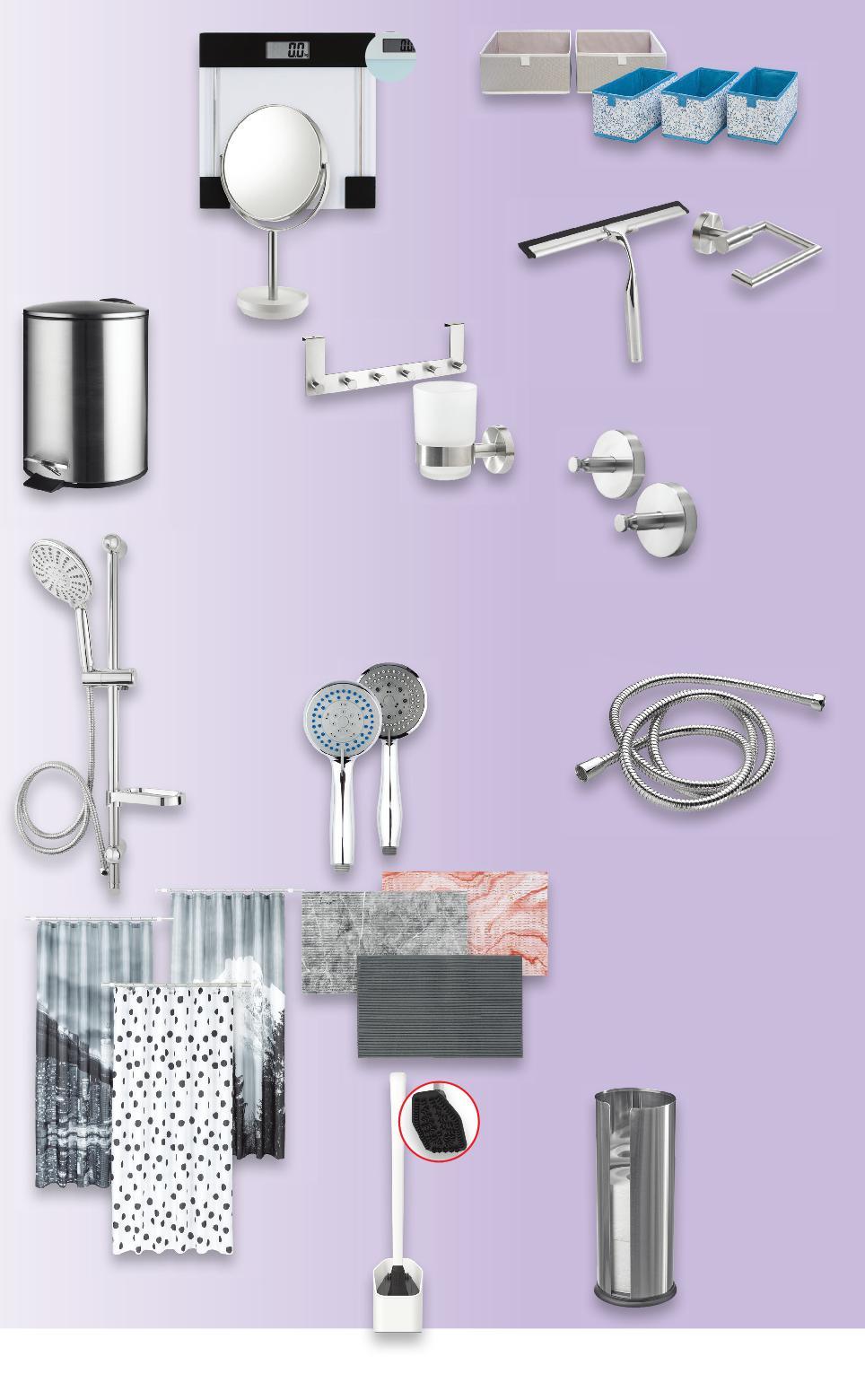 Цените са валидни за посочените на последна страница хипермаркети Стоките се продават в количества, обичайни за едно домакинство Всички цени са в лева с включен ДДС. Всички артикули се предлагат без декорация. Снимките са примерни. ните 9,99* само 9,99* само 16,99* само 5,99* само 15,99* само 29,99* само 9,99* само 16,99* само -27% 7,99 10,99 19,99* само -15% 10,99 12,99 7,99* само 9,99* само УДОБСТВА В БАНЯТА 2 броя LIV&BO Кутии за съхранение 2 бр. - 28 x 13,5 x 26,5 cм 3 бр. - 15 x 13,5 x 26,5 см LIV&BO Завеса за баня пере се на 40 °C, 180 х 200 см LIV&BO Душ слушалка 5 функции (струя, душ, дъжд, масаж, смесена), хром, Ø9,7 см LIV&BO Стъклен кантар или Козметично огледало 1 бр. LIV&BO Универсална подложка 65 x 40 см LIV&BO Поставка за тоалетна хартия неръждаема стомана и пластмаса, Ø15 x 34 см LIV&BO Душ комплект с тръбно окачване 5 функции, Ø15 см, височина 75 cм, шлаух 150 см LIV&BO WC четка силикон LIV&BO Стъклочистачка с гумен ръб или Поставка за тоалетна хартия метал и стомана, 1 бр. LIV&BO Шлаух за душ благородна стомана, за връзки 1/2“, дължина 2 м, включени 2 уплътнения LIV&BO Кошче за отпадъци капак с плавно затваряне, корпус от благородна стомана, вътрешна част от пластмаса, 4,3 л Комплект закачалки благородна стомана, Ø5,3 х 4,7 см LIV&BO Поставка с чаша или Закачалка за врата с 6 куки 1 бр. Нашата марка S46-BG-KW04-LFT-NFP5_L-1000-10 46