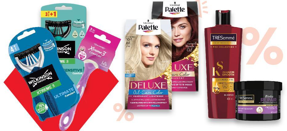 *Със звездичка са обозначени артикулите, които са специално предложение до изчерпване на наличностите. Kaufland не носи отговорност за печатни грешки. -38% 5,49 8,99 3,99 само 7,79 само -38% 1,29 2,09 -30% 4,29 6,19 -50% 2,79 5,69 -33% 5,99 8,99 -46% 2,99 с5,59 5,59 амо само DOVE Крем за ръце различни видове 75 мл (1 л = 37,20) PALETTE DELUXE Боя за коса различни цветове 1 бр. NIVEA Дезодорант спрей различни видове 250 мл (1 л = 31,16) ЧИСТО Сапун антибактериален различни видове 100 г (1 кг = 12,90) TESORI D‘ORIENTE Душ крем различни видове 250 мл (1 л = 17,16) NIVEA Балсам за устни различни видове 4,8 г (1 кг = 798,00) TRESEMME Шампоан, Балсам или Маска за коса различни видове 400 - 440 мл (1 л = до 14,98) COLGATE Паста за зъби Max White / Naturals или четка за зъби различни видове 75 мл / 1 бр. Цена с KAUFLAND CARD КОЗМЕТИКА -30% ОТСТЪПКА ЗА САМОБРЪСНАЧКИ С МАРКА WILKINSON XTREME 3 S33-BG-KW04-LFT-DRP_R-1000-10 33