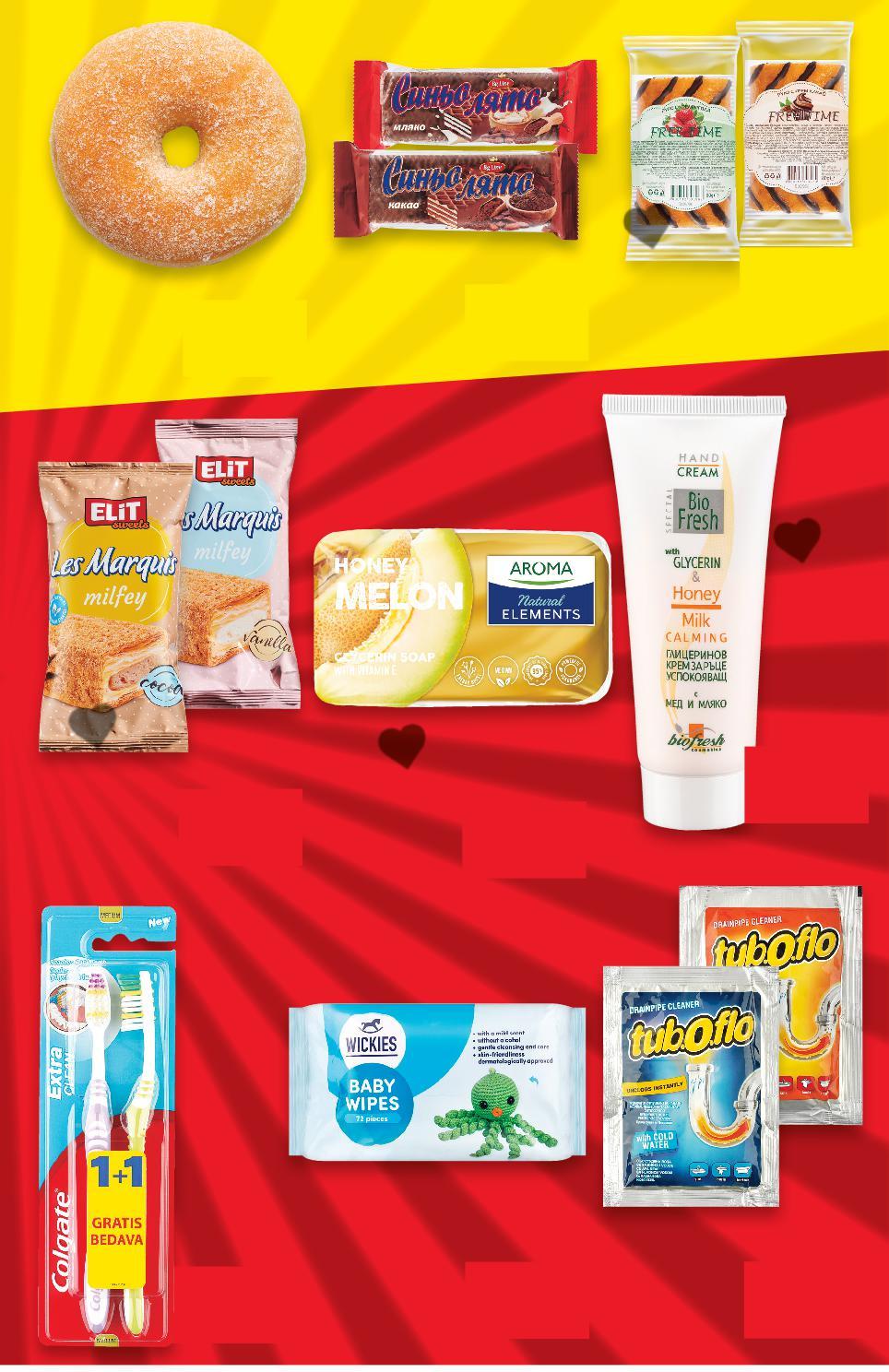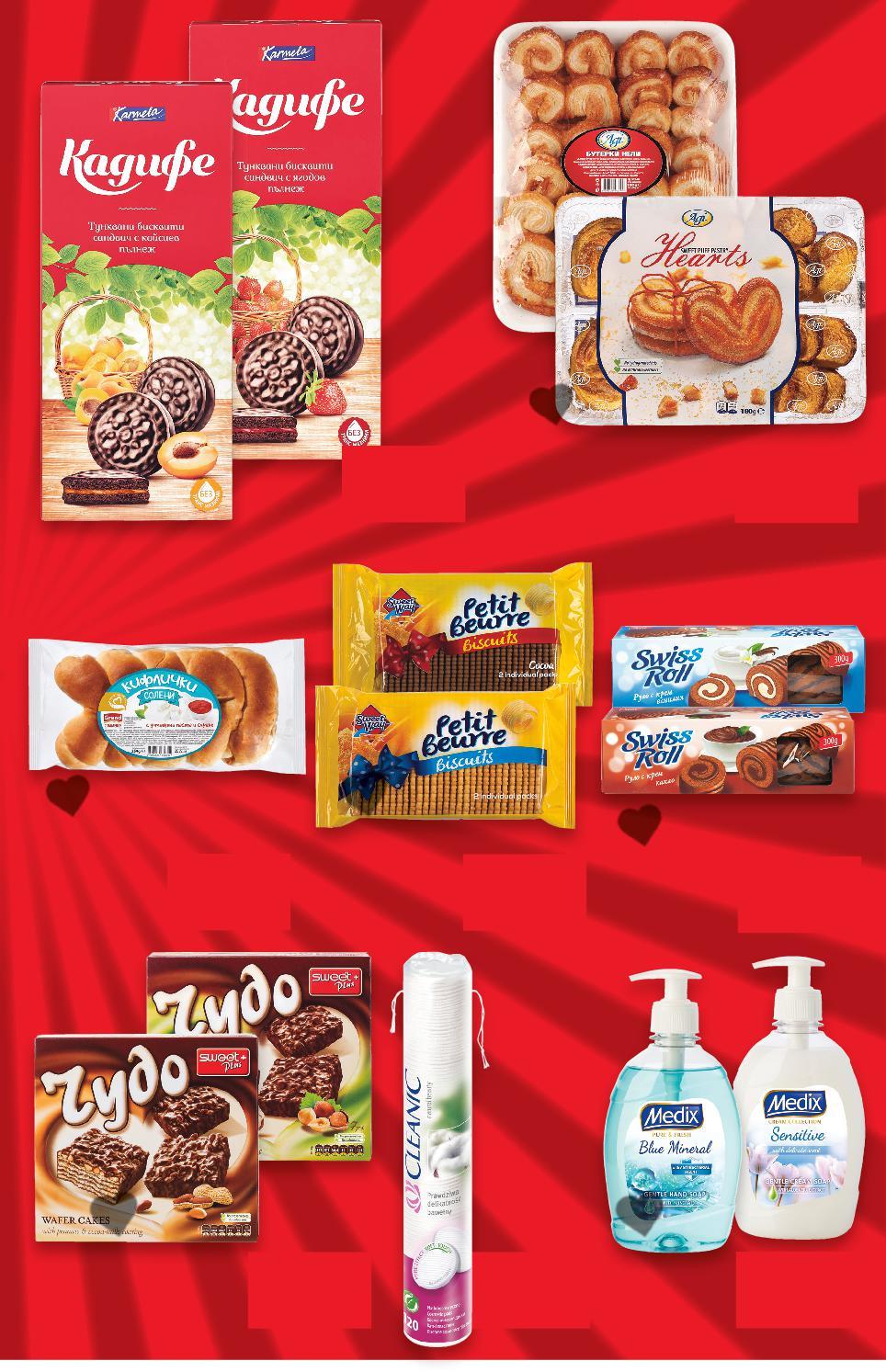 *Със звездичка са обозначени артикулите, които са специално предложение до изчерпване на наличностите. Kaufland не носи отговорност за печатни грешки. -33% 2,00 2,99 -33% 2,00 2,99 -37% 2,00 3,19 -19% 2,00 2,49 -48% 2,00 3,85 -37% 2,00 3,19 -47% 2,00 3,79 -41% 2,00 3,39 2,00 2,00 2,00 ,00 2,00 2,00 2,00 2,00 2,00 2,00 2,00 2,00 2,00 2,00 2,00 2,00 КАДИФЕ Тунквани бисквити сандвич ягода, малина или кайсия 180 г (1 кг = 11,12) Руло с декорация различни вкусове 300 г (1 кг = 6,67) АГИ Бутер сладки „Сърчица“ или Бутерки „Нели“ 180 г (1 кг = 11,12) MEDIX Течен сапун различни видове 400 мл (1 л = 5,00) ЧУДО Вафлени хапки различни видове 125 - 180 г (1 кг = от 11,12) SWEET WAY Бисквити Petit Beurre класик или какао 400 г (1 кг = 5,00) ГРАНД КОМЕРС Кифлички различни видове 250 г (1 кг = 8,00) CLEANIC Тампони за почистване на грим Pure 120 бр. в опаковка (1 бр. = 0,02) S5-BG-KW04-LFT-SPAR2_R-1000-10 5