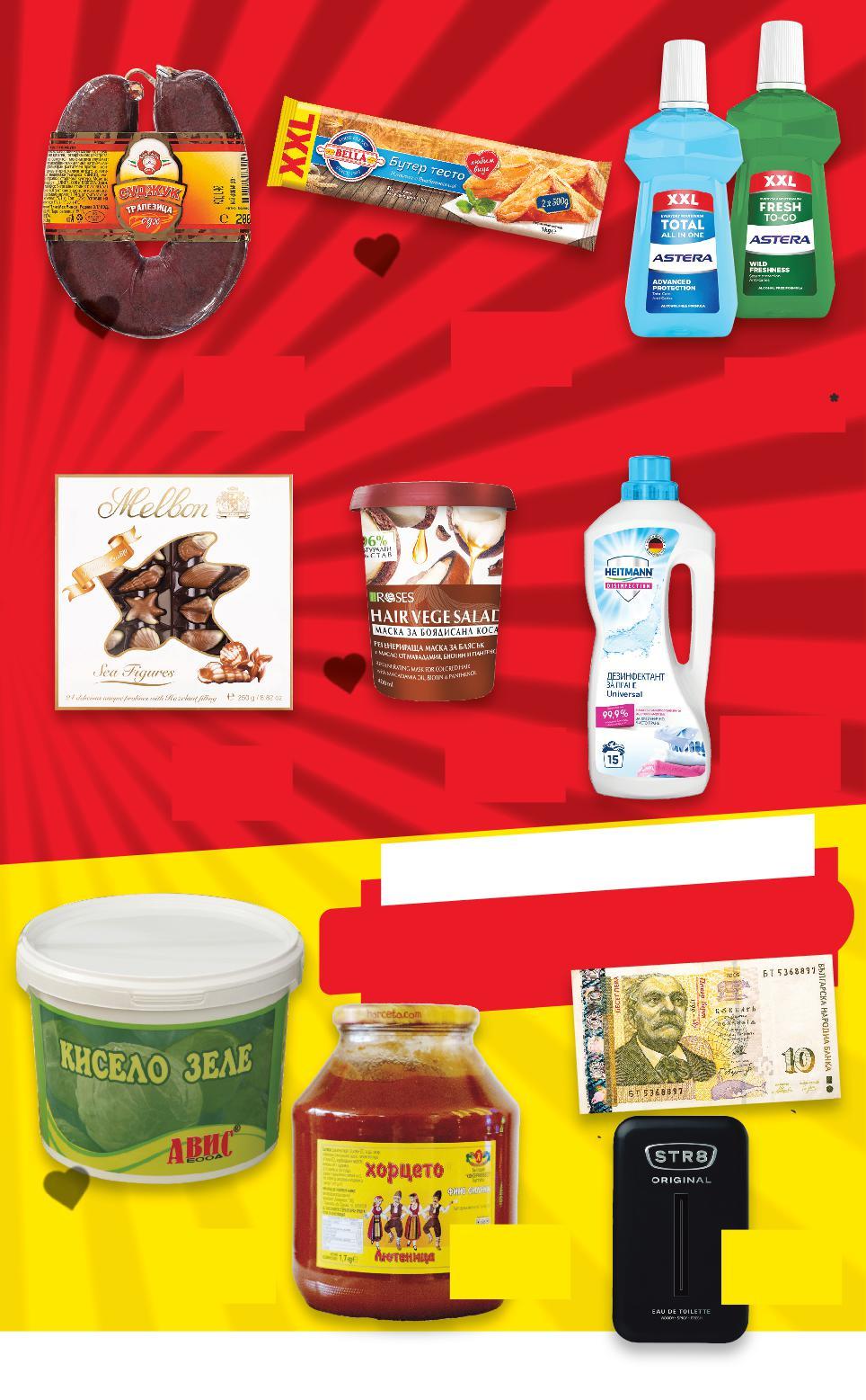 *Със звездичка са обозначени артикулите, които са специално предложение до изчерпване на наличностите Kaufland не носи отговорност за печатни грешки. В О СПЕСТЯВАЙ С KAUFLAND! ъс -44% 5,00 8,99 -34% 5,00 7,59 5,00 само -23% 10,00 12,99 10,00 само 10,00* само -37% 5,00 7,99 -49% 5,00 9,99 -41% 5,00 8,59 5,00 5,00 5,00 5,00 5,00 5,00 5,00 5,00 5,00 5,00 5,00 5,00 10,00 10,00 10,00 10,00 10,00 10,00 1,7 кг 4,5 кг 1 кг 15 пранета 1 изпиране = 0,34 лв. HEITMANN Дезинфектант за пране срещу бактерии и гъбички различни видове 1,25 л = 15 пранета (1 л = 4,00) AGIVA Маска за коса Hair Vege Salad различни видове 400 мл (1 л = 12,50) ASTERA Вода за уста Total или Fresh 1000 мл (1 бр. = 5,00) АВИС Кисело зеле кофа 4,5 кг (1 кг = 2,23) STR8 Тоалетна вода различни видове 50 мл (1 л = 200,00) ХОРЦЕТО Лютеница фино смляна 1700 г (1 кг = 5,89) MELBON Шоколадови бонбони морски фигури 250 г (1 кг = 20,00) БЕЛЛА Бутертесто XXL опаковка замразено 1 кг (1 кг = 5,00) ЕЛИТ МЕС Суджук Трапезица 200 г (1 кг = 25,00) Ч S7-BG-KW04-LFT-SPAR3_R-1000-10 7