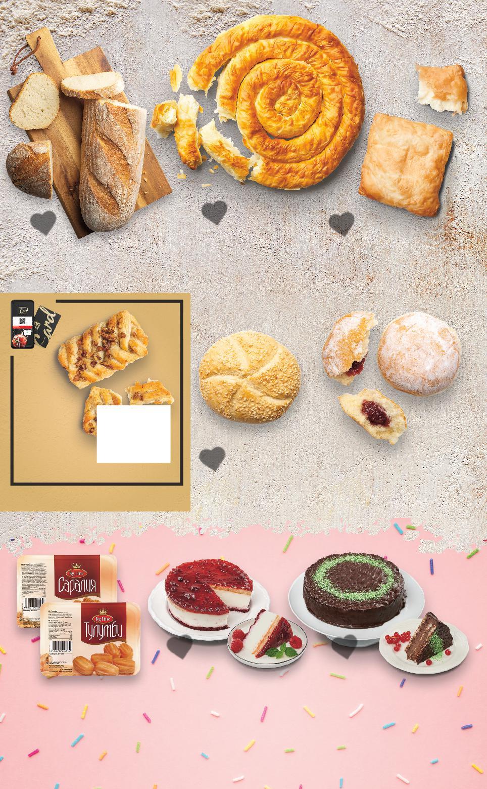 Отстъпката с Kaufland Card e изчислена спрямо стандартната текуща цена, на която продуктът се предлага в хипермаркета. Цените са валидни за посочените на последна страница хипермаркети. Стоките се продават в количества, обичайни за едно домакинство. Всички цени са в лева с включен ДДС. Всички артикули се предлагат без декорация. Снимките са примерни. РАЗНООБРАЗИЕ ОТ НАД 20 ТОРТИ И ДЕСЕРТА -26% 0,65 0,89 -17% 1,45 1,75 -36% 5,49 8,59 -31% 1,99 2,89 -37% 2,49 3,99 -28% 13,49 18,99 -37% 7,99 12,79 -47% 0,10 0,19 -35% 0,89 1,39 само с1,39 амо Поничка с плодов пълнеж 65 г (1 кг = 10,00) Гръцка баница с извара и сирене 235 г (1 кг = 6,18) Вита баница със сирене и извара 740 г (1 кг = 7,42) Селски хляб пшеничен или типов 450 г (1 кг = 4,43) BG LINE Тулумби или Саралия 260 - 300 г (1 кг = до 9,58) КРИНОС Торта Гараш 30% орехи в блата с орехов и фъстъчен пълнеж 1200 г (1 кг = 11,25) Чийзкейк с малини или шоколад бисквитена основа с пълнеж от крема сирене 800 г (1 кг = 9,99) Земел със сусам 60 г (1 кг = 1,67) Закуска с кленов сироп и орехи 84 г (1 кг = 10,60) Цена с KAUFLAND CARD ПЕКАРНА S24-BG-KW04-LFT-NMP1_L-1000-10 24